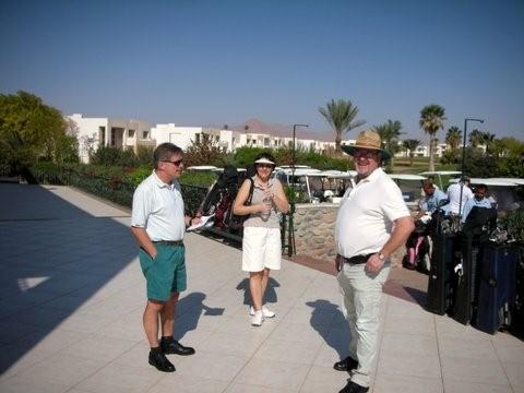 Valkoinen golfauto kiitää kaksi miestä kyydissään väylää nro 16 n. 250 metrin päähän. Auto pyörii ympyrää kuin väkkärä ja palaa sitten vajaat 100 metriä taaksepäin väylällä. Miehet keskustelevat kovaäänisesti. Sitten auto palaa täyttä vauhtia teeboxille ja miehet kysyvät: "Oletteko avanneet?". Tiiauspaikalla vuoroaan odottava ryhmä vastaa yhdestä suusta, etteivät ole avanneet. Automiehistä toinen huudahtaa: "Hyvä, ne ovat sitten meidän pallot". Auto hurahtaa takaisin pallojen luo ja peli jatkuu.Yllä oleva tuokiokuva on Fernetclubin golf-viikolta Sharm-el-Sheikissä marras-joulukuun vaihteessa. Viikon sää oli parasta, mitä kaamoksen keskeltä aktiivilomalle lähtijää voi odottaa. Lämpötila oli päivällä 27-30 Celsiusta, aurinko paistoi pilvettömältä taivaalta ja hipiää hyväili miellyttävä tuulenvire. Iltaisinkaan ei villapaitaa juuri tarvittu. Hotellimme Jolie Ville oli miellyttävä tuttavuus; isot hyvät huoneet ja parvekkeet vehreälle allasalueelle ja merelle päin. Hotellilta oli suora yhteys meren rantaan, jonka upea koralliriutta lukuisine värikkäine kalalajeineen oli elämyksellinen ja hieno. Allasalueella voi halutessaan uida noin 500 metrin kierroksen palmujen välissä olevissa altaissa. Ruoka oli varsin maittavaa ja monipuolista, jopa siinä määrin että kolmen lisäkilon hankkiminen ei ollut temppu eikä mikään viikon aikana. Vaikka olosuhteet olivat taattua siirtomaatasoa, uskaltautuivat useimmat jopa kylillekin. Kyliä oli kaksi, Naama Bay ja itse Sharm-el-Sheik hieman etäämmällä. Näissä oli kaikki lomahömpötykset tarjolla, mutta myös kunnon basaari- ja vanhakaupunginmeininkiä oli saatavilla. Fernettiläiset tutustuivat siellä moniin erilaisiin harrasteisiin: mm. vesipiipun pössyttelyyn (osoittautui, että eräs yhteisömme jäsen on lajissa varsinainen pro, aviomiehensä taas amatöörimäinen muikistelija). Väitettiin jonkun taas hakeutuneen yöjalassa tomumajansa ulkoiseen revitalisoimiseen cobra-öljykäsittelyllä. Joka tapauksessa monet vapaa-ajan harrasteet auttoivat golfareita palautumaan pelipäivien rasituksista ja virittäytymään seuraaviin urheilusuorituksiin.