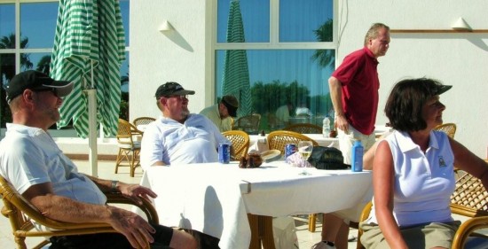 Jolie Villen golf-kenttä oli varsin miellyttävä; leveät väylät, paljon haastavia vesiä, hyväkuntoiset ja pitävät greenit. Pienenä miinuksena kivikovat bunkkerit (miksiköhän, kun hienoa bunkkerihiekkaa on saatavissa lähistöltä pilvin pimein) ja kovat hiekkaraffit. Kuitenkin kokonaisuus kenttä oli hyvä, ja lisäpiirteenä monipuolinen linnusto lippulaivanaan valtava pelikaani. Pelaamisen oheistoimintoja helpottamassa kentällä olivat mukavat ja avuliaat caddiemasterin ja sheriffin apupojat, jotka olivat suorastaan vilpittömän kiitollisia kollektiivitipeistämme. Siis ylisummaan erittäin onnistunut golf-viikko, johon osallistui 8 klubilaista ja 5 avecia.