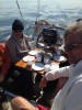 Iltaa istuttiin Callo Nero ravintolassa. Fernet muusikot HessuKoo ja Hande soittivat Callo Neron alakerrassa tuttua musaa. Antipastoja nauttien ja musaa kuunnellen ilta sujui melkoisen letkeästi. Musiikki vahvistusta tuli ensin Espanjasta ja myöhemmin vielä virolainen tenoritähti Lembit Tolga päätti viihdyttää koko ravintolaa. Loppujen lopuksi ilta päättyi aamuun, noin kello viiteen. Sunnuntaina sitten melkoisen väsyneinä kipparit suuntasivat veneiden keulat kohti Suomea. Kaikki pääsivät takaisin, osa illalla hukatuista tavaroista tuli kuitenkin jälkitoimituksena. Siis mitään ei kadonnut. Kiitos.
