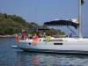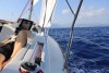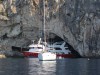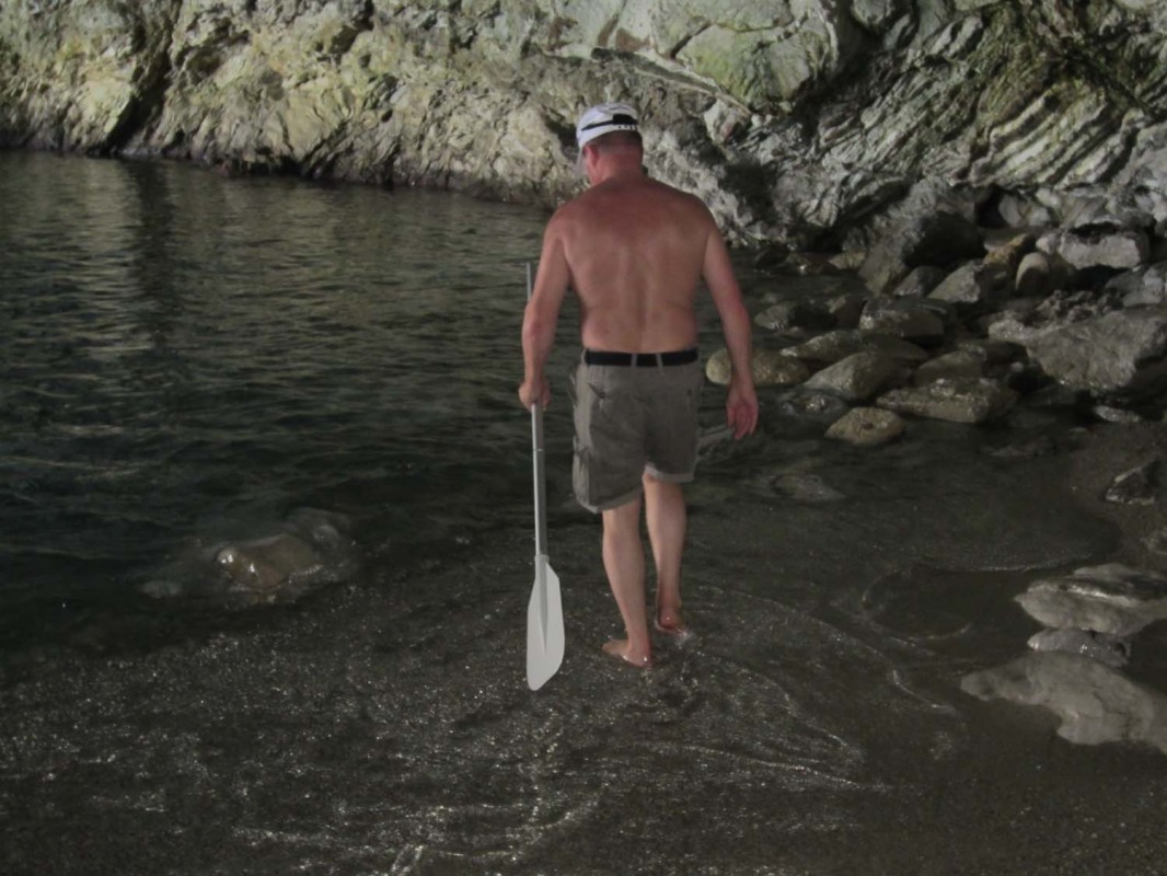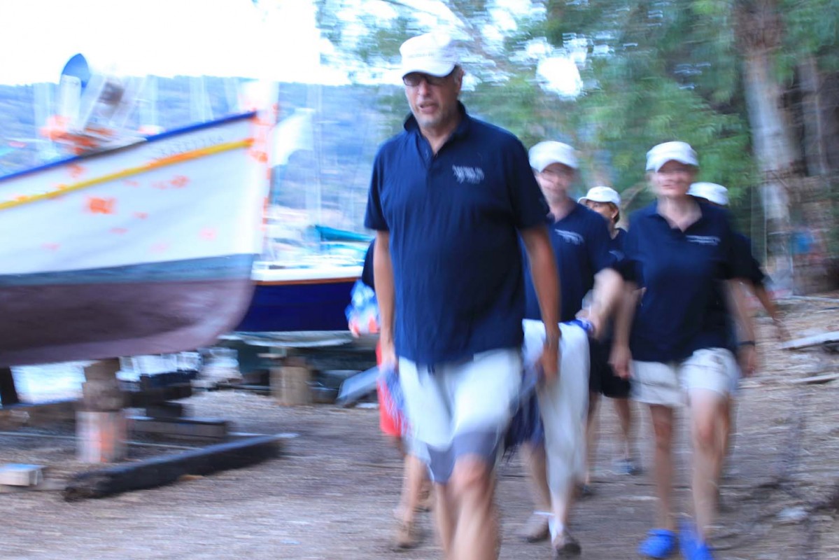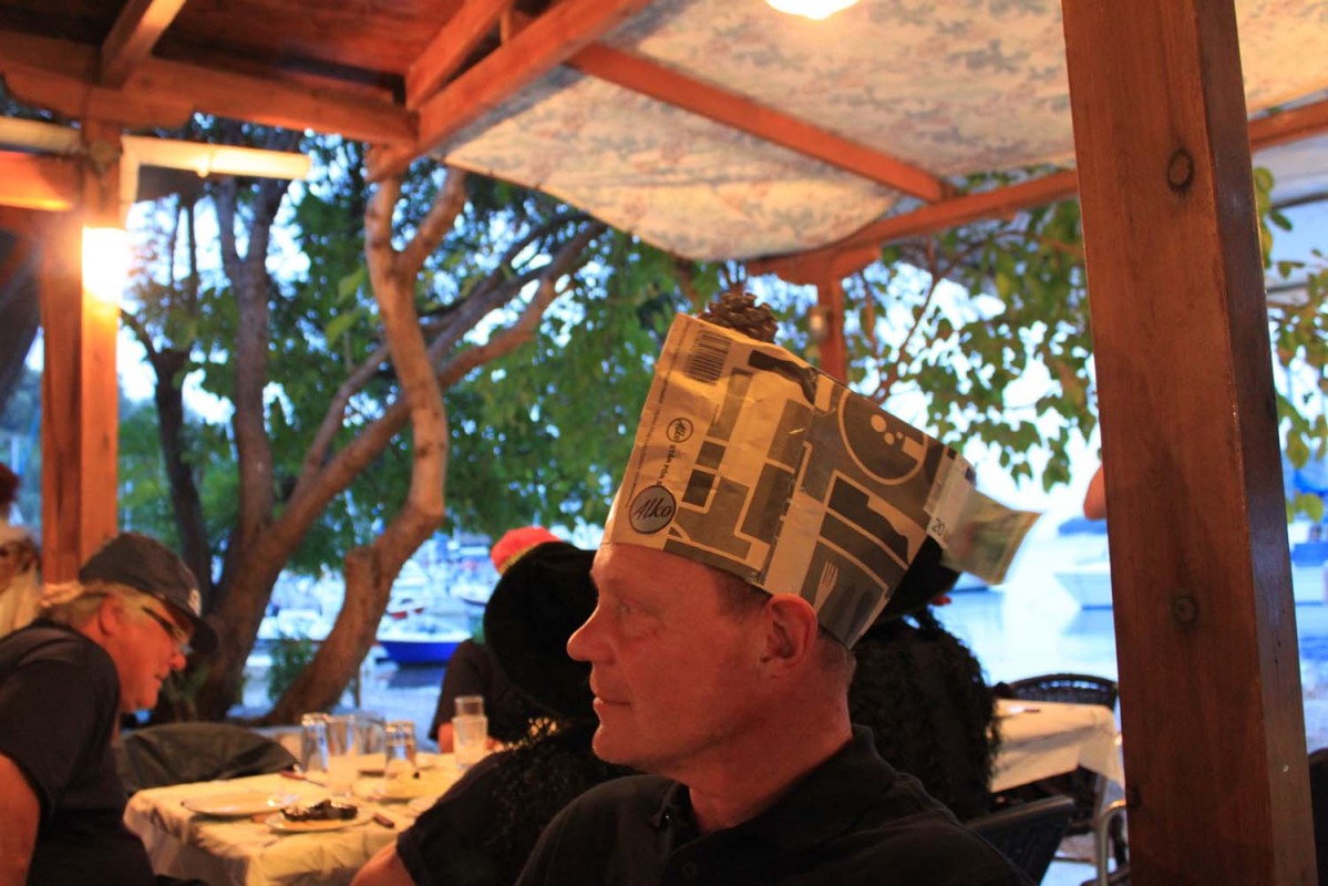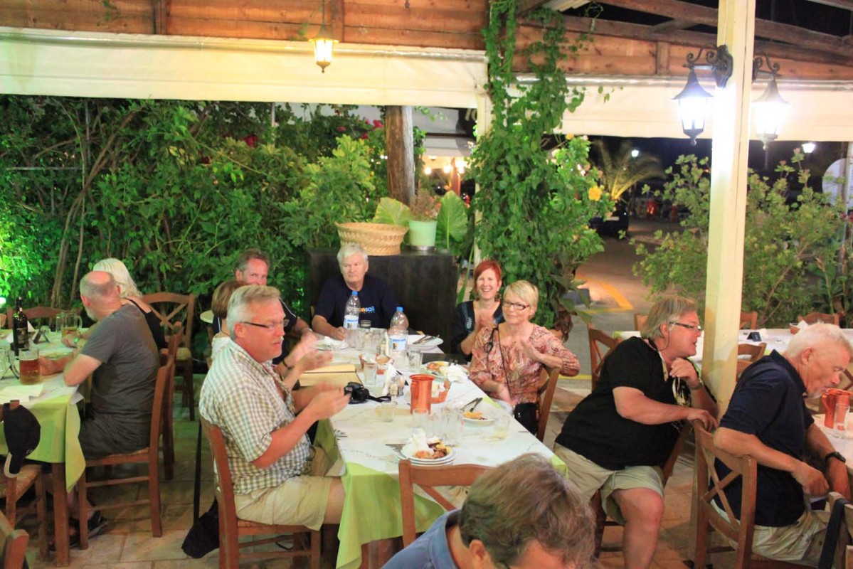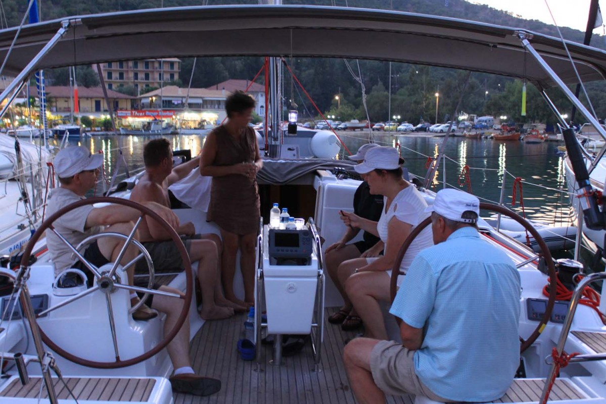 Aamulla oli tyyntä ja lämmintä. Ohjelmassa oli Meganisin saaren luoliin tutustumista. Retkikuntamme löysi luolasta melanomavapaan hiekkarannan. Luonan seinästä löytyi myös graffitteja, ilmeisesti desanttien tekemiä. Puolenpäivän aikoihin rupesi taas tuulemaan ja purjehdimme lounastamaan ja uimaan One House Bay nimiseen lahdelmaan. Oli kiva snorklailla kun kalparvet pyörivät veneen ympärillä. Osa kaloista oli niin kesyjä, että niitä sai kiinni paljain käsin. Illaksi purjehdimme Ithakalle Vathiin. Tämä olikin jo isompi kylä jossa oli lukuisia pieniä kauppoja ja paljon ravintoloita. Oli satamaan parkkeerattu pari superjahtiakin. Yöllä satamaan saapui paikallinen yhteyslaiva joka aiheutti melkoiset aallot, niin että koko satama heräsi tarkistamaan, että vieläkö ankkuri pitää. Aamulla kalastajat tulivat myymään saaliitaan rantaan. Kävimme kokeilemassa myös kirkonkellojen sointia. Puolen päivän jälkeen matkasimme Kefaloniaan Eufimia-kylään jossa on kuvattu elokuva Kaapteeni Corellin mandoliini. Siitä asiasta nyt ei paljoa ollut jäljellä - yksi kahvila. Ilta meni vauhdikkaasti kun kreikkalaiset ja suomalaiset muusikot yhdistivät voimansa. Meno oli vauhdikasta ja erittäin hauskaa. Ilta loppui vasta aikaisn aamulla ja ravintoloitsija oli erittäin tyytyväinen.