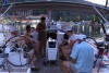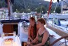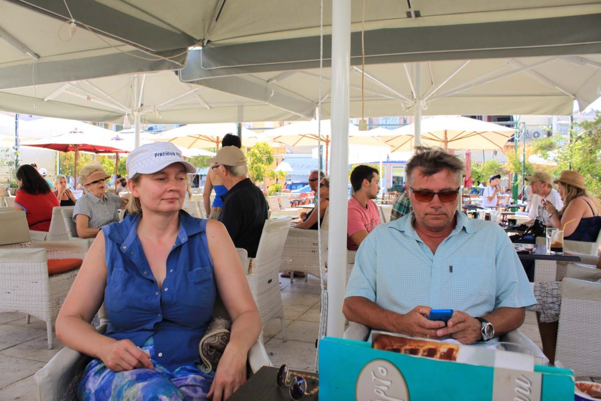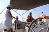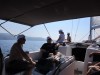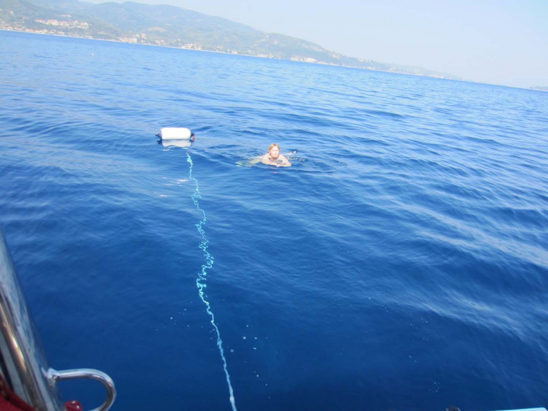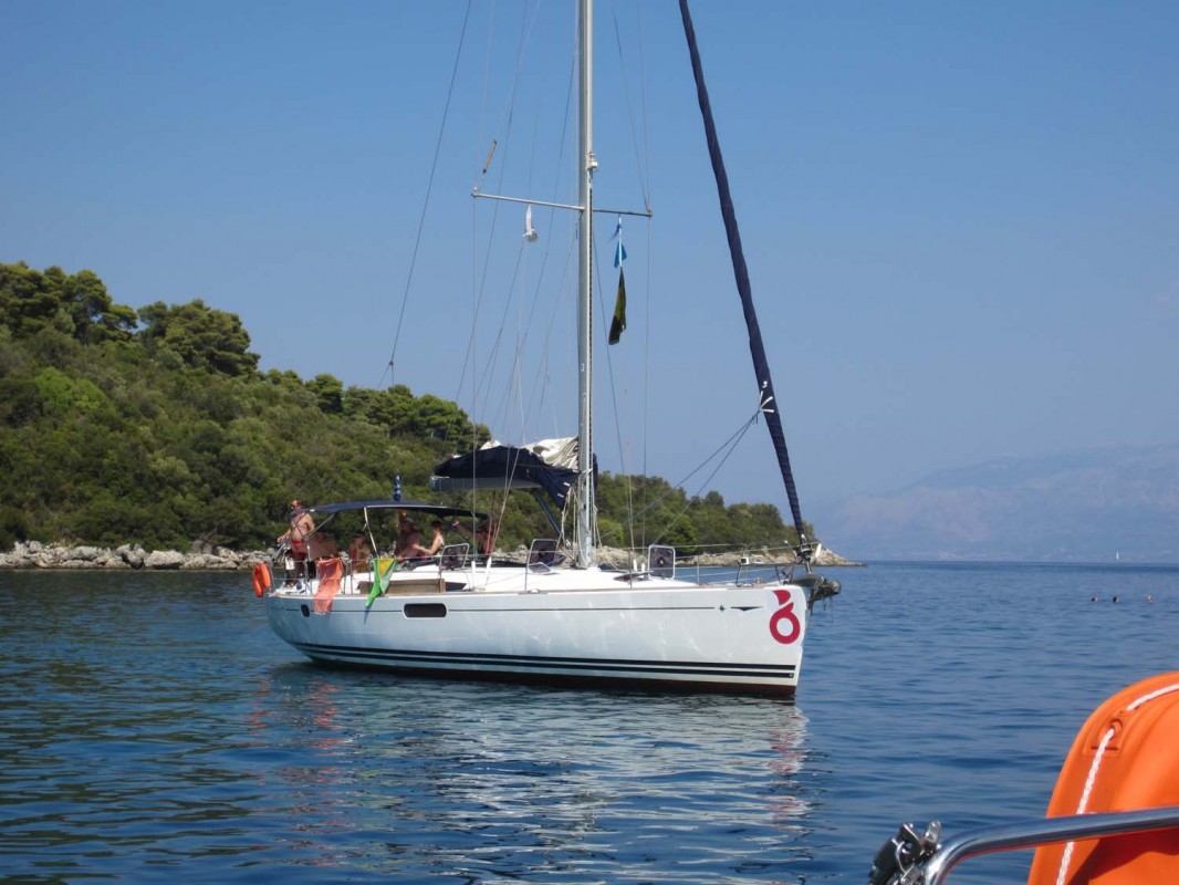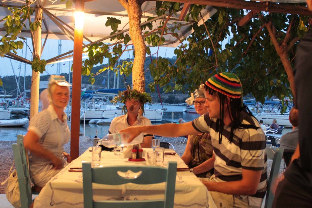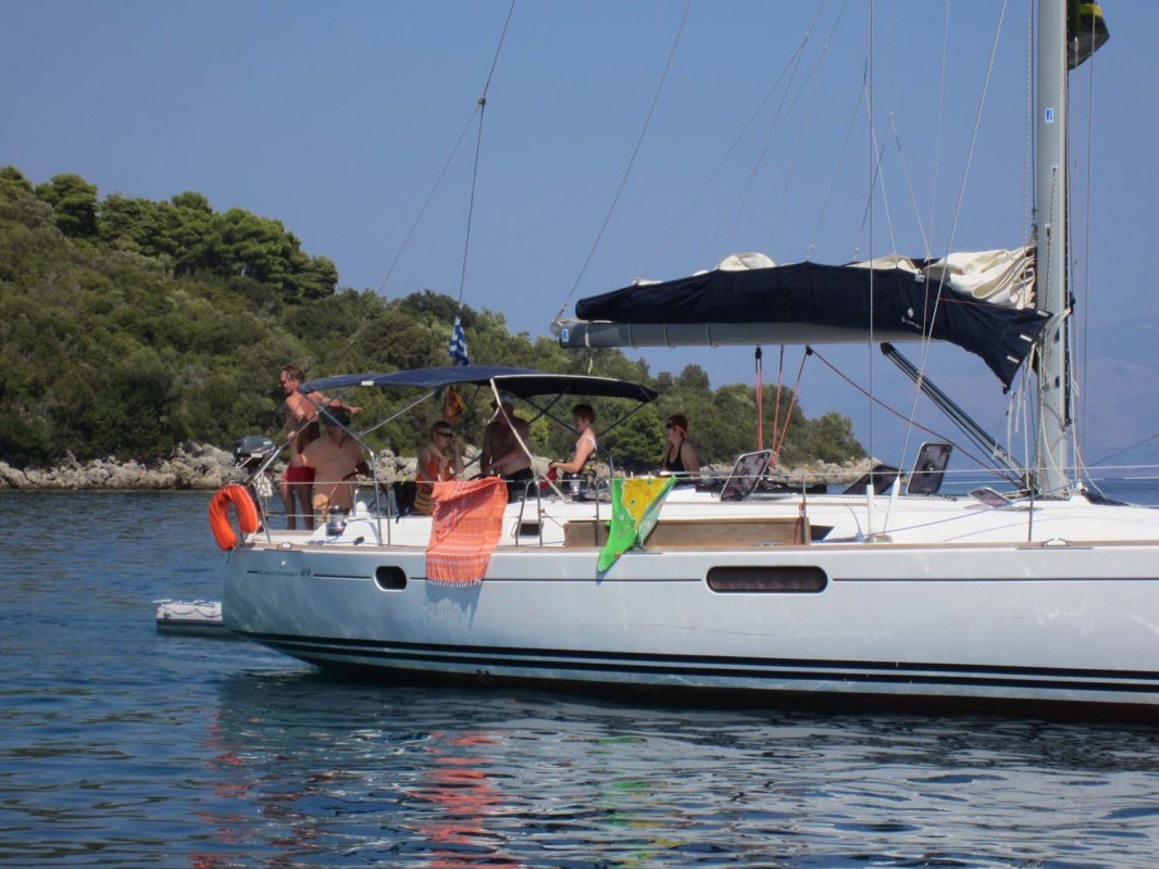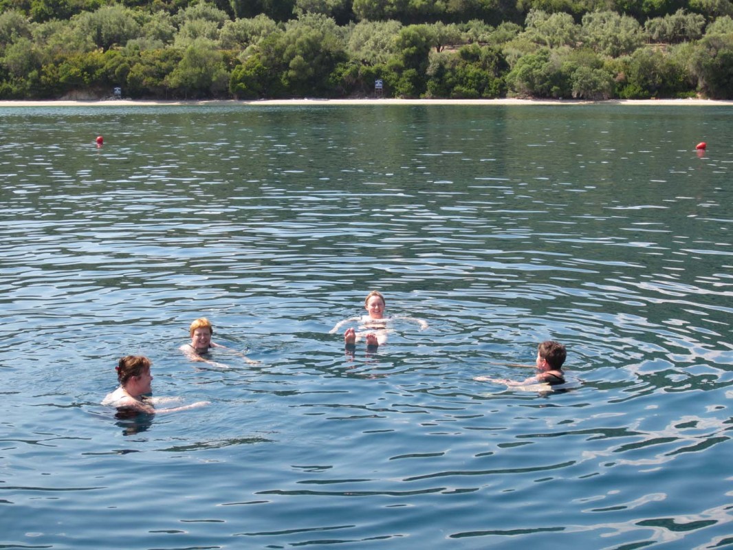 Saavuimme lauantaina Lefkasiin jo hyvissä ajoin, ja saimme tsekata veneet kaikessa rauhassa. Iltaa vietettiin Lighthouse nimisessä tavernassa, jossa meidän musikantit saivat hyvän tunnelman aikaan. Aamulla sitten pirteänä herättiin ja lähdettiin purjehtimaan kohti Scorpios saarta. Tuuli oli melko heikko, joten moottorilla ajoksi se lopulta meni. Scorpios saaren laguunissa vietettiin mukavaa iltapäivää, uitiin, syötiin lounasta. Noudettiin unohtuneet veneen asiakirjat ystävällismielisestä artistien veneestä. Tuuli rupesi viriämään ja pääsimme purjehtimaan Sibotaan. Satama oli melko täynnä, mutta saimme kuitenkin kohtuullisen hyvät paikat. Ilta meni perinteisesti tavernassa nauttien paikallisia herkkuja ja talon viiniä.