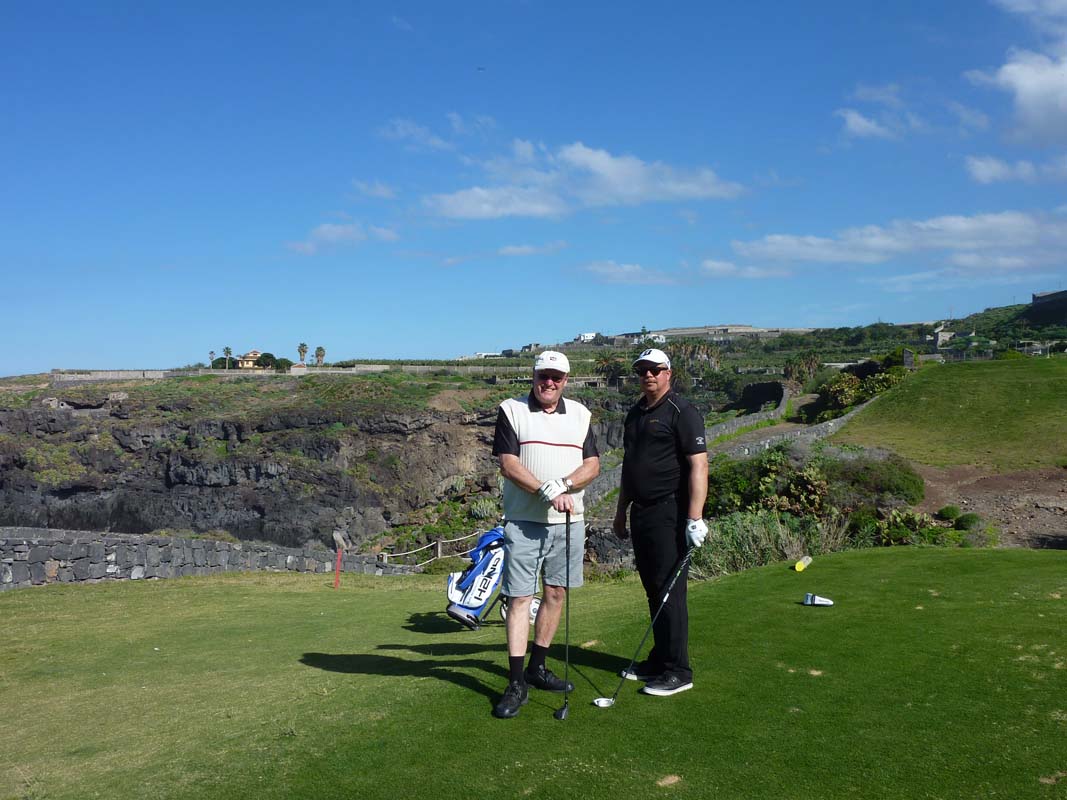 Klubin golfmatka Tenerifalle suuntautui saaren harvemmin vierailulle pohjoispuolelle. Koneen laskeuduttua Teneriffan Nord kentälle 18 pelaajan ryhmäämme tervehti iltapäivän pehmeän lämmin, kevyt merituuli. Vajaan tunnin linja-automatka pakollisine pysähtymisiin toi meidän kauniin Hotel Vincci Selección Buenavista Golf & Spa pihaan. Hotelli sijaitsi aivan golfkentän vieressä ja oli kokonaisuudessa hieno kokemus. Matkan hintaan kuului myös hotellin upean Span käyttöoikeus, mitä pelaajat runsaasti hyödynsivät pelin jälkeen. Siellä myös hoidettiin muutaman "äijä" sivuvedon jälkiseuraukset (tässä linkki http://www.youtube.com/watch?v=gX8UkHkXwNs ). Pelasimme koko viikon hotellin viereisellä Severiano Ballesteroksen suunnittelemalla Buena Vista Championship kentällä. Kenttä oli allekirjoittaneelle ja varmasti myös muille pelaajille miellyttävän positiivinen kokemus. Aiemmat kokemukset Seven suunnittelemista "vuoristoradoista" haihtuivat mielestä jo muutaman reiän jälkeen ja vanhan mestarin luomus oli kaikin puolin miellyttävä kokemus. Kentän korkeuserot oli hyödynnetty lempeästi suunnittelussa ja viikon pelaamisen jälkeen kentästä jäi kaikin puolin miellyttävä kuva. Pelaajille oli varattu 5 pelipäivää, jolloin paikalliseen elämään tutustumiseen oli varattu yksi päivä. Innokkaimmat käyttivät pelaamiseen tuon yhden vapaapäivän, mutta osa lähti bussilla läheiseen Santa Cruz de Tenerife kaupunkiin, osan vuokratessa auton liikkuen sillä eri puolilla saarta. Pelaamisen ohessa viikon aikana ehdimme pelata Scramble joukkuekilpailun arvotuin joukkuein, koko 5 päivän ajan pelatun Eclectic kilpailun sekä tietenkin viikon päättäneen mestaruuskilpailun. Tuohon mestaruuskilpailuun klubimme on saanut uuden kiertopalkinnon. Perinteinen kotka on saanut pikkuveljen ja matkustamiseen paremmin sopivan kokoisen kotkapatsaan.
