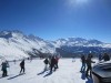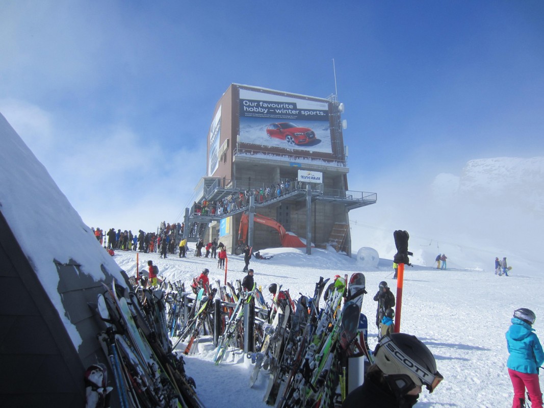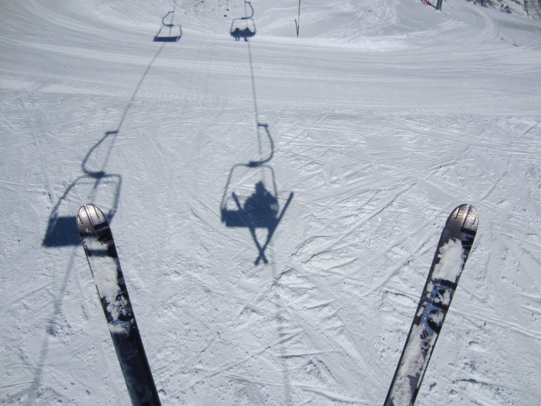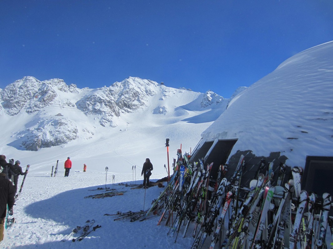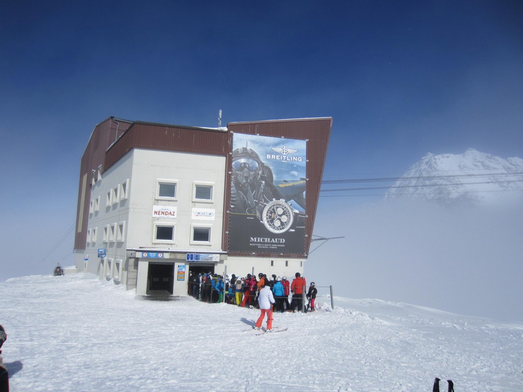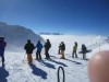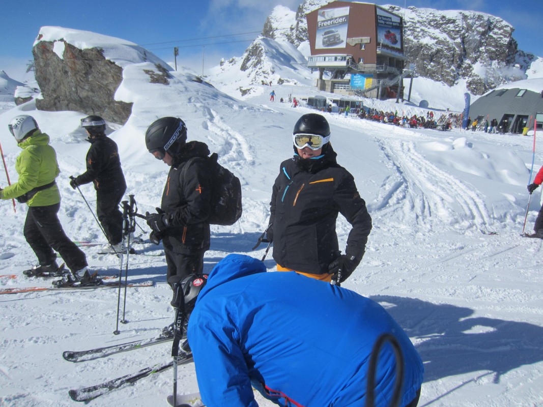 Sunnuntai aukeni sumuisena ja hieman lumisateisena. Nousimme kuitenkin Les Ruinettesin yläasemalle, josta opas ohjasi meitä ylöspäin seuraavaan hissiin. Laskimme huonossa ja todella huonossa näkyväisyydessä. Aivan ylhäällä Col des Gentianesissa (2950 m) paistoi ajoittain aurinko. Huonosta näkyvyydestä johtuen laskimme turvallisesti sinistä rataa (känniränniä) pitkin hotellille.
