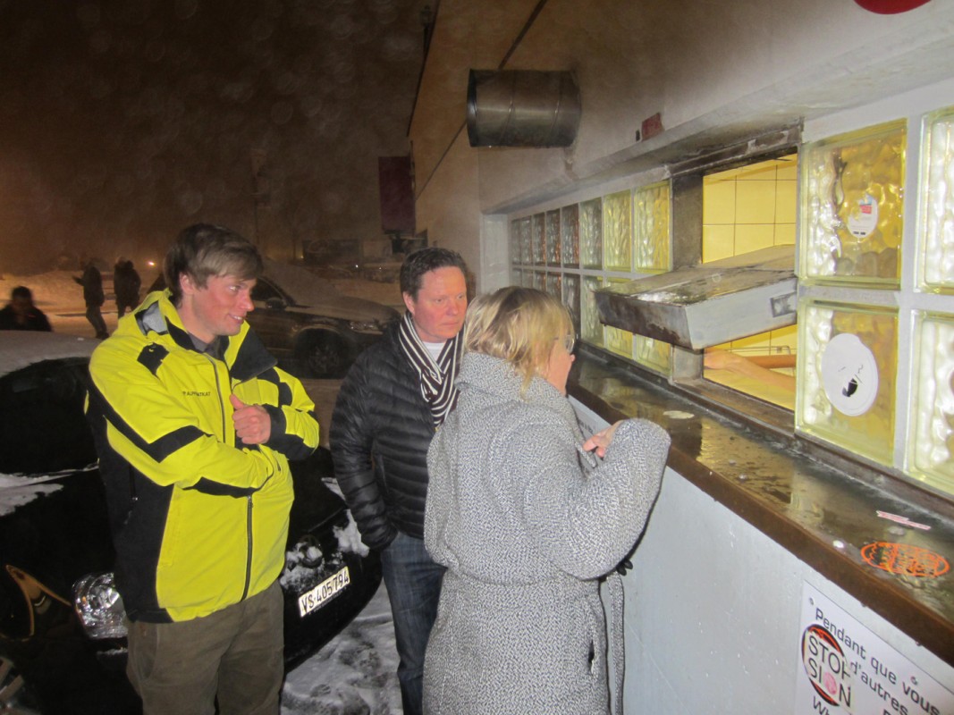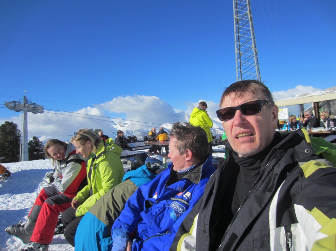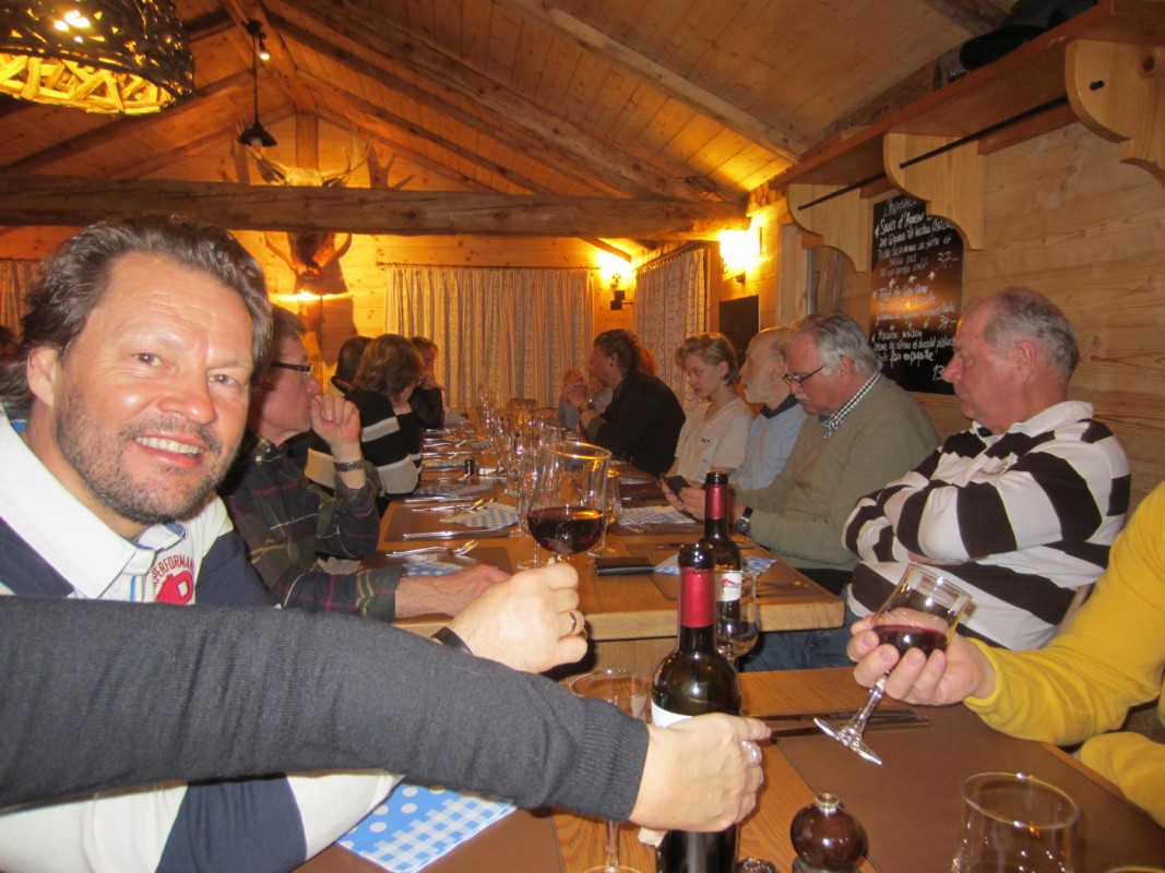 Perjantai oli jälleen suttuinen, sumuinen ja lumisateinen päivä. Aamulla lähdettiin Savoleyresin alueelle. Näkyvyys oli heikko, mutta parani päivää kohti. Lasketeltiin noin klo 13 asti, koska hotellilla alkoi pitkä lounas klo 14.30. Hotellin henkilökunta oli pyynnöstämme valmistanut herkullisen lounaan punaviineineen. Jälkiruoaksi oli Marken omin käsin, voilla leipomia pipareita sekä sinihomejuustoa.