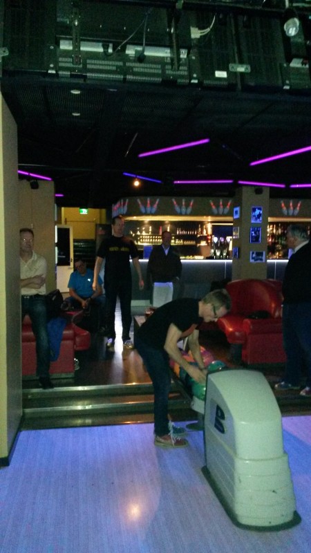 Musiikki soi, valot välkkyivät ja kilpailu alkoi. Hauskaa oli ja Wespakin kävi meitä tervehtimässä. Radoilta kuului kommentteja "Se oli millistä kii ! ", "Upee paikko!" ja "Kyllä lähtee!". Kahden tunnin taidokkaan keilauksen jälkeen keräännyttiin jälkipeliin Samin laskiessa kertyneitä pisteitä.