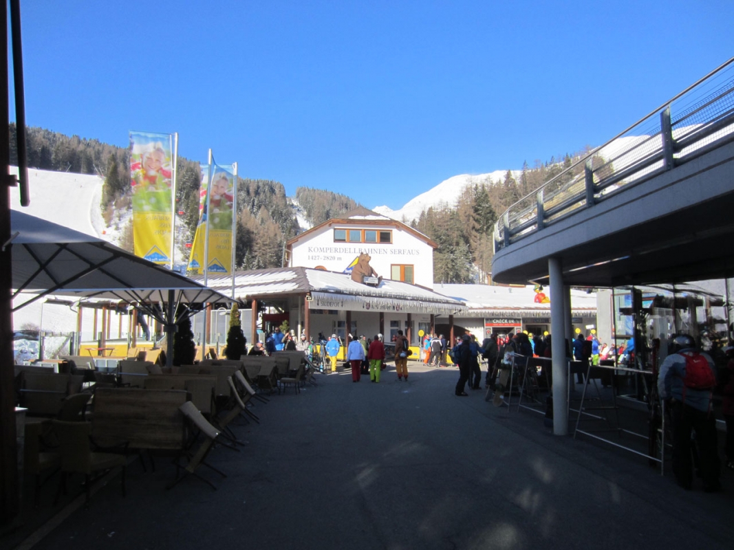 Serfausin kylässä käy kaikki rivakasti ja vähällä byrokratialla. Moni oli varannut sukset jo etukäteen nettialennuksella, muut saivat alekupongin käteensä bussissa matkan hintaan sisältyneen hissilipun kanssa. Toiminta vuokraamoissa oli suoraviivaisen tehokasta, ja omat tai vuokratut välineet jätetään hissikeskuksen yhteydessä olevaan säilytyspalveluun, jossa kengätkin kuivataan yön aikana.Metrojuna kuljettaa laskijat hotellien tuntumasta hissiasemalle ja takaisin.
