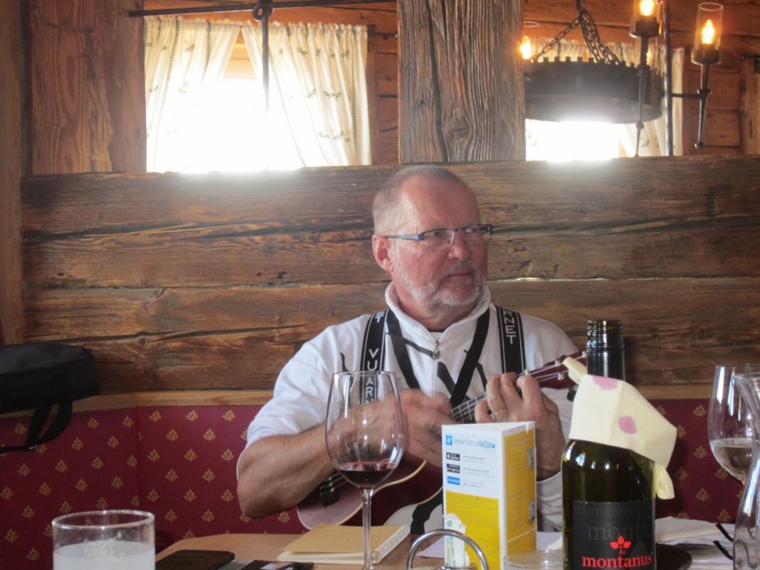 Iltaohjelmista yleisin oli harras aperitiivi/digestiivi -kokoontuminen hotellin vieressä sijaitsevassa viinikappelissa (Weinkapelle), jossa maanantai-iltana kuultiin talon puolesta laadukasta elävää musiikkiakin. Tiistaina vietettiin hotellilla omatoiminen musiikki-ilta, jossa ukuleleduo ja yhteislaulu kirvoittivat kansainvälisen yleisönkin osallistumaan: viehättävä naissolisti kuittasi pöydän päältä hollantilaisen lastenlaulun koreografian kera. Baarin nurkkapöydässä ilmeisesti koko illan istuneesta eläkeläisseurueesta nousi vielä encoremme jälkeen vanhempi herrasmies esittämään soolona hieman epäilyttävän sotilaalliselta kuulostavan juomalaulun.