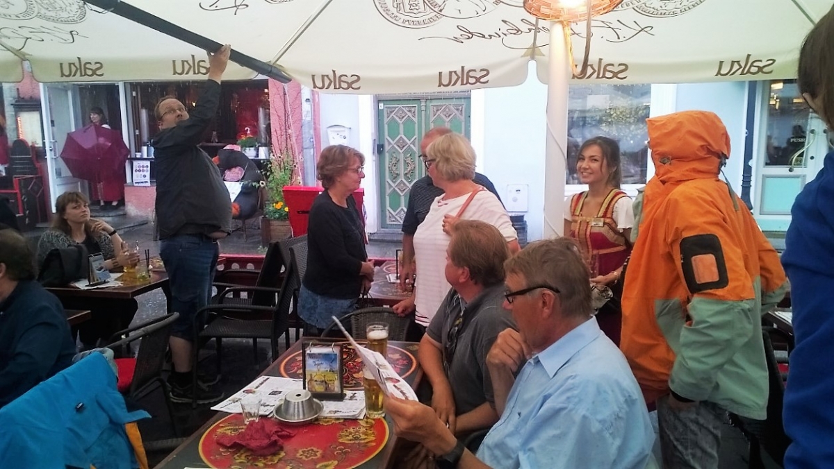 Klubin puheenjohtajan ja virallisen lintubongarin Wespan vahvistaman havainnon mukaan Tallinnan yleisin lintulaji on nostokurki (lat. grus constructus). Illan suunnistushaaste olikin löytää lukuisten aidattujen rakennustyömaiden lomitse reitti läheisen Rotermann-korttelin keskelle. Siellä, tarkemmin ravintola Platzin ryhmällemme kattamassa pitkässä pöydässä nautittiin maittava illallinen, jonka jälkijuomalauluja säesti paikallisen yleisön ällistykseksi peräti neljä ukulelensoittajaa.