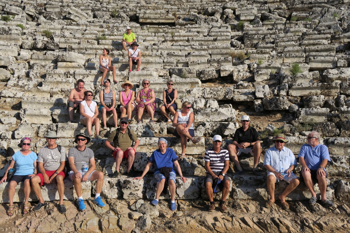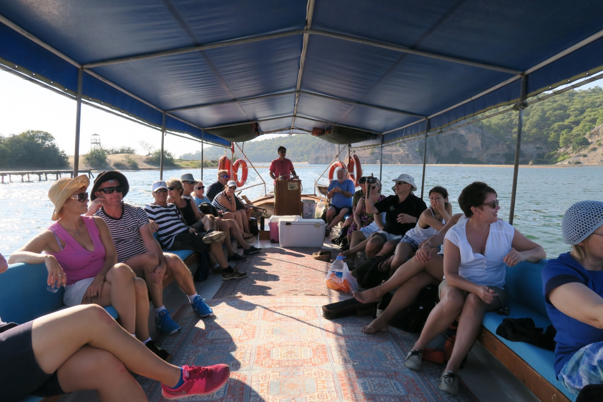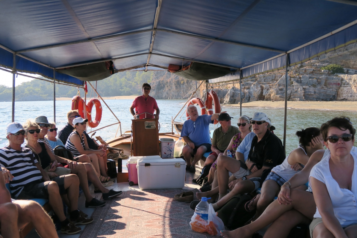 Maanantaina purjehdittiin reippaassa sivutuulessa Marmariksen lahden Turunçiin Lagoon 421 -katamaraanin taittaessa taivalta parhaimmillaan 9,5 solmun nopeudella. Tiistaina matka jatkui Ekincikiin, jossa paikallisliikennepoliittisista syistä rantauduttiin Yacht Clubin My Marinan sijasta kylän satamaan lahden luoteispohjukkaan. Sieltä saatiin jokivenekuljetus Kaunosin raunioille. Alueella oli muinoin vilkas satamakaupunki, jonka historiasta on löydetty jälkiä lähes tuhannen vuoden takaa ennen ajanlaskun alkua. Myöhemmin jokisuisto vähitellen kuivui, ja turkkilaisten valtauksen jälkeen kaupunki hylättiin tyystin 1500-luvulla AD. Jäljelle jäivät rauniot amfiteattereineen, kylpylöineen ja vuoren seinään louhittuine hautamuistomerkkeineen. Retkueemme tutustui Kaunosin lisäksi samassa jokisuistossa sijaitsevaan Dalyanin kylään virkistävän välijuoman merkeissä.