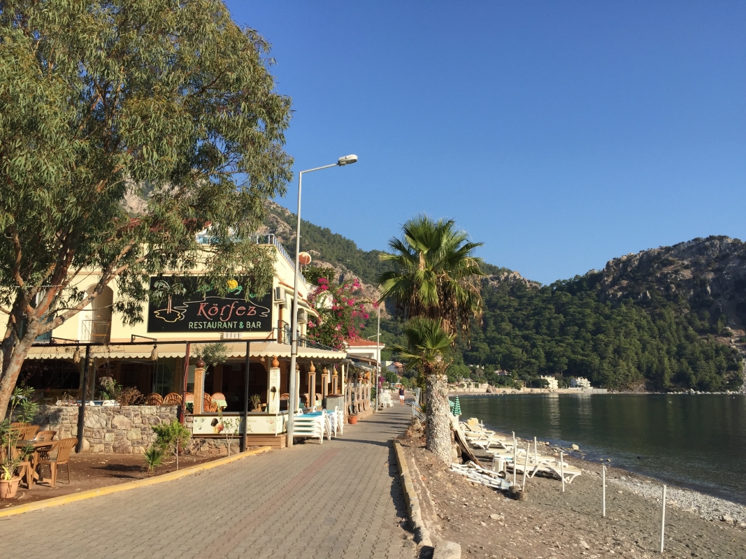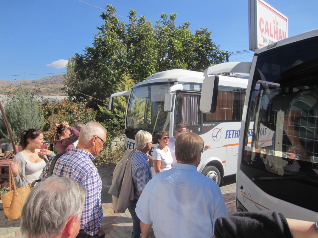 Perillä odotti auringon lämmön lisäksi bussikuski, joka ajoi ryhmämme Marmarikseen. Matkalla pysähdyttiin syömään hintaan sisältyvä maittava lounas. Perillä majoituttiin hotelliin ennen suunnistusta hiljaisen basaarikorttelin läpi illallista kohti. Sesongin myöhäisyys näkyi myös Marmariksen rantakadulla, mutta legendaarisessa Caria-ravintolassa riitti asiakkaita jopa niin paljon, että logistiikka jo vähän jätätti.