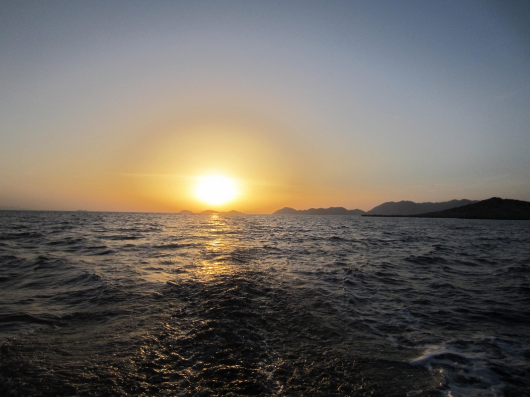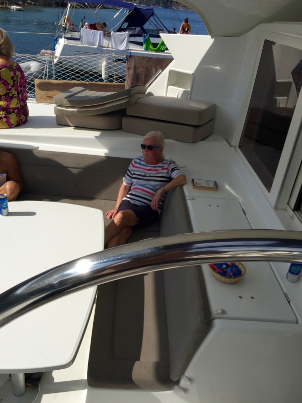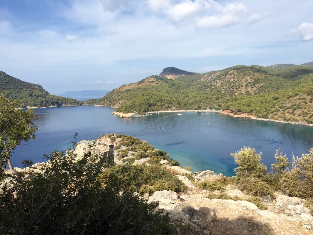 Torstaina jatkettiin kevyessä, aurinkoisessa kelissä purjehdusta kohti Fethiyen lahtea päätyen kuitenkin sen kaakkoispuolelle Cold Water Bayhin, jossa tuttu ravintoloitsija Ali opasti veneiden ankkuroinnin ja kiinnityksen peräköysillä kallioon sekä nouti seurueen venekunta kerrallaan veneellään rantaan, josta kiivettiin ylös Alin ravintolaan syömään villisikaa ja muita paikallisherkkuja.
