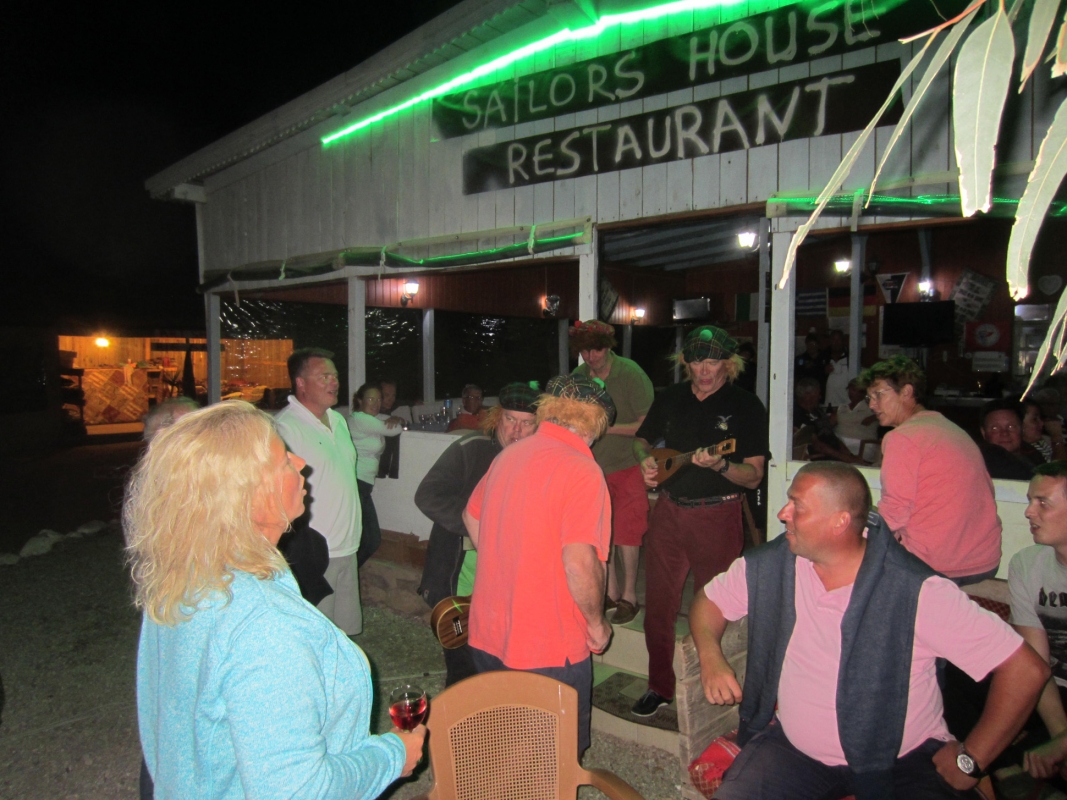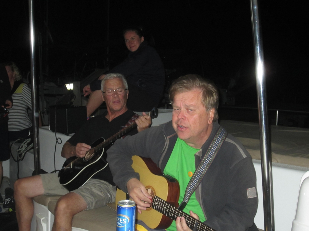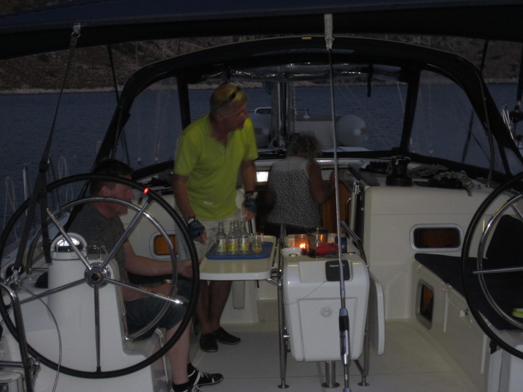 Osin purjeidenkin voimalla saavuttiin illan suussa Bozukaleen, jossa katit pujoteltiin laiturin sisäpuolelle kylkikiinnitykseen. Ravintolassa jouduttiin mainion illallisen lisäksi osallistumaan ohjelmalliseen illanviettoon, jonka aivan yllättäen aloittivat tuntemattomat punatukkaiset ukuleletaiteilijat ruutubaskerit ja mustat lasit päissään. Ilta jatkui toisen paikalle sattuneen vierasmaalaisen eskaaderin viettäessä eräänlaista joukkokaraokesessiota ravintolan patiolla: taustamusiikin raikuessa ghettoblasterista koko jengi lauloi seisten kuorossa.