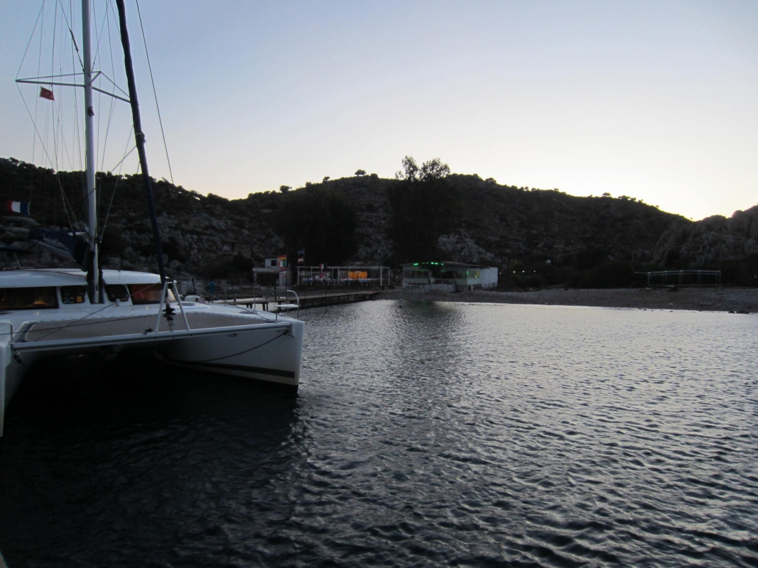 Perillä Orhaniyessa odottivat sinne yön aikana Fethiyestä ajetut vuokraveneet: Fountain-Pajot Salina 48, Lagoon 421 ja Sun Odyssey 509. Pikaisen vastaanottotarkastuksen ja lastauksen jälkeen eskaaderi starttasi jokseenkin aikataulussa kahden maissa ensi etapille. Suunnitelma oli siis ajaa viikon aikana yksisuuntainen reitti Orhaniyesta Fethiyeen ja palata sieltä takaisin lentokentälle.