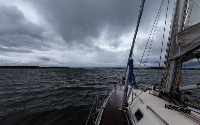 Vanha latteus, jonka mukaan ei ole olemassa huonoja purjehdussäitä, on vain vääriä varusteita, ei oikeasti pidä paikkaansa. Perjantain purjehdussää oli aluksi selvästi huono: kolea tuuli oli vastainen ja ajoittain satoi runsaasti vettä, joka valui ikävästi kevyen sadeasun hihansuista ja sydvestin alta sisäpuolelle.