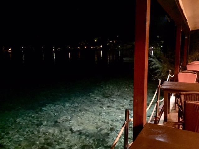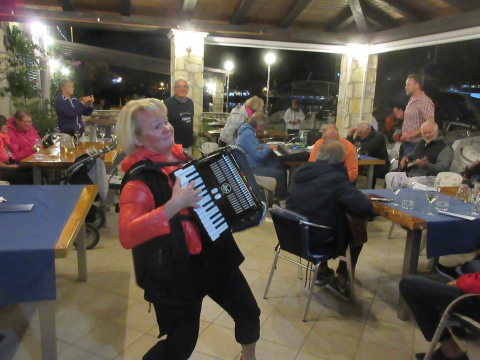Aivan laiturin kyljessä sijaitsevat ravintolat hoitivat parhaimmillaan pöytävaraukset ja laskut venekohtaisesti rutiinilla. Tarjolla oli pitkälti paikallista, tuoretta ruokaa kohtuuhinnoin - etenkin kalaa ja äyriäisiä - sekä elävää musiikkia klubilaisten omin voimin. Jonkin verran ehdittiin myös tutustua saarten maisemiin ja nähtävyyksiin.
