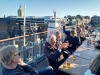 Terasssikausi 2018 avattiin 8.5. klo 17 alkaen Helsingin kattojen korkeudella, ravintola Loisteen parvekkeella. Sää oli kerrankin mitä mainioin, ja paikalle saapuikin 24 henkilöä nauttimaan seurasta, kelistä, näköaloista ja myös sopivista terassijuomista.