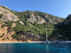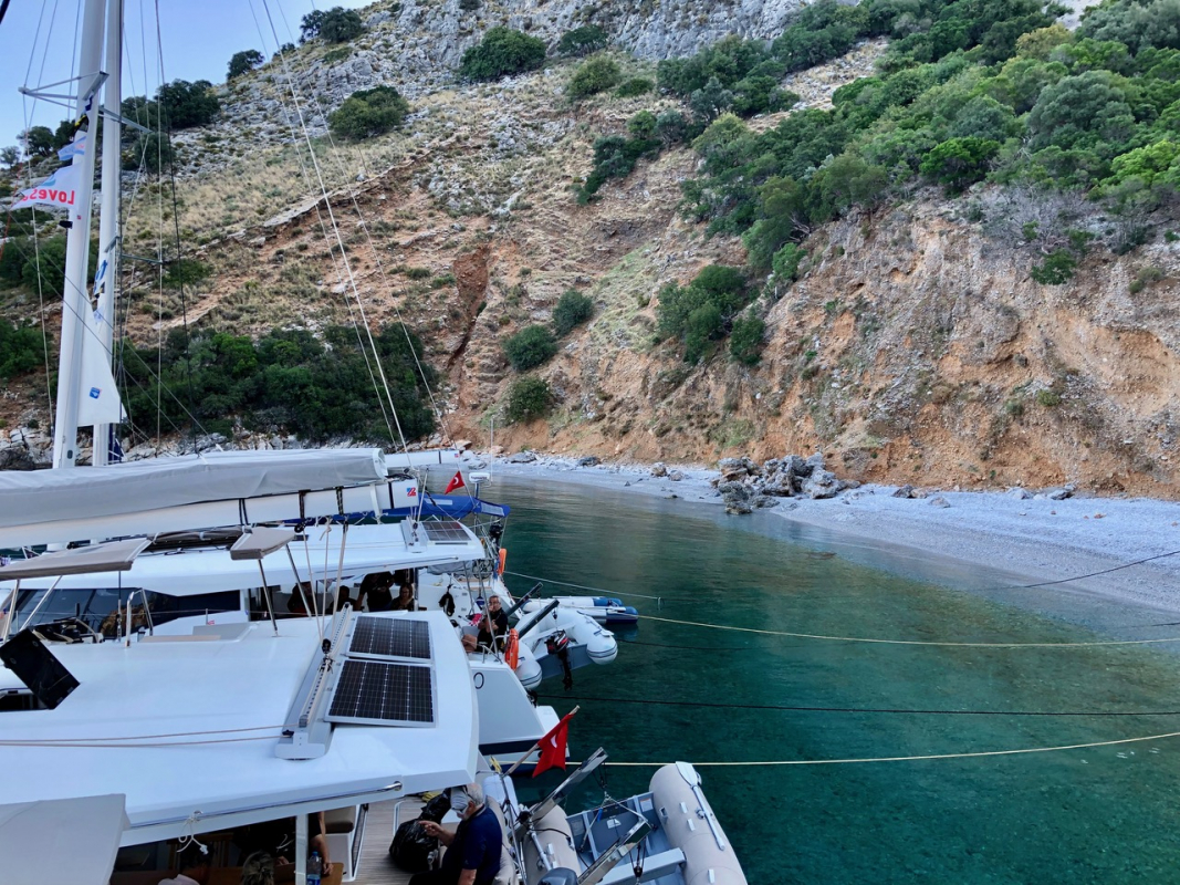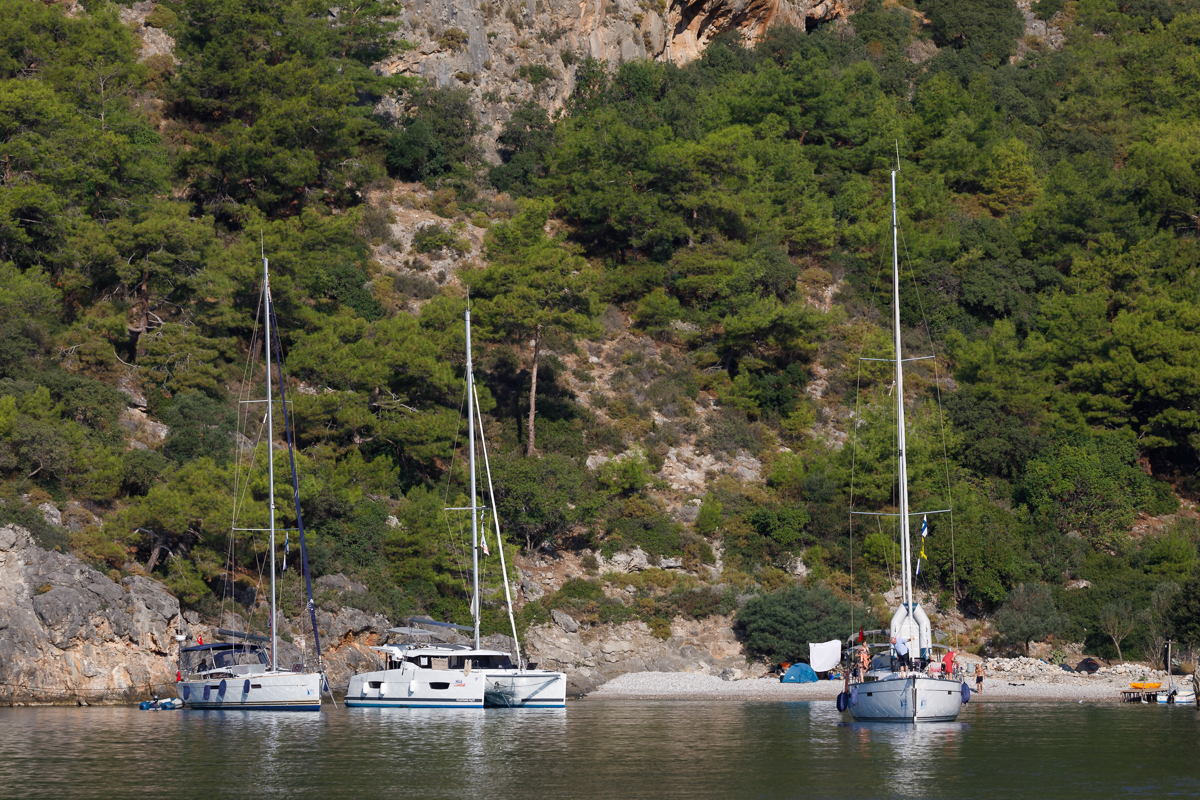 Matka jatkui tiistaina samoissa olosuhteissa (lähes pilvetöntä aurinkoa, vesi +26C, ilma +20-30C, iltapäivisin purjetuulta) edelleen länteen Turunciin sekä sieltä takaisin itään upealle luonnonlahdelle Stone Bayhin ja torstai-illaksi Sarsala Bayhin. Osa jengistä kävi matkan varrella lisäksi tutustumassa antiikkisiin kuninkaiden kalliohautoihin Kaunoksen suistoalueella.