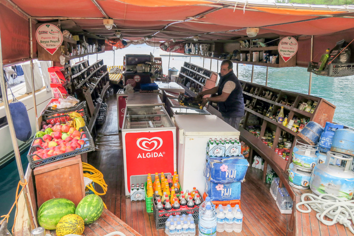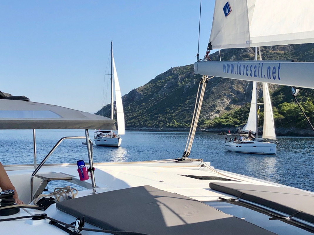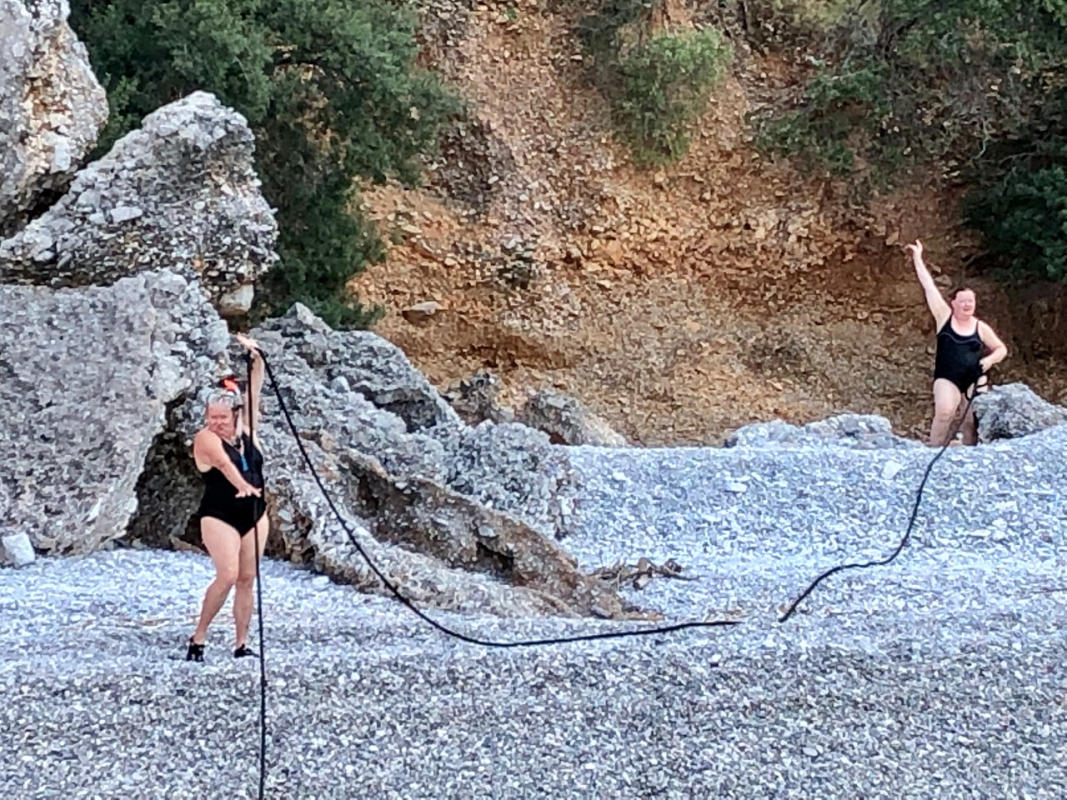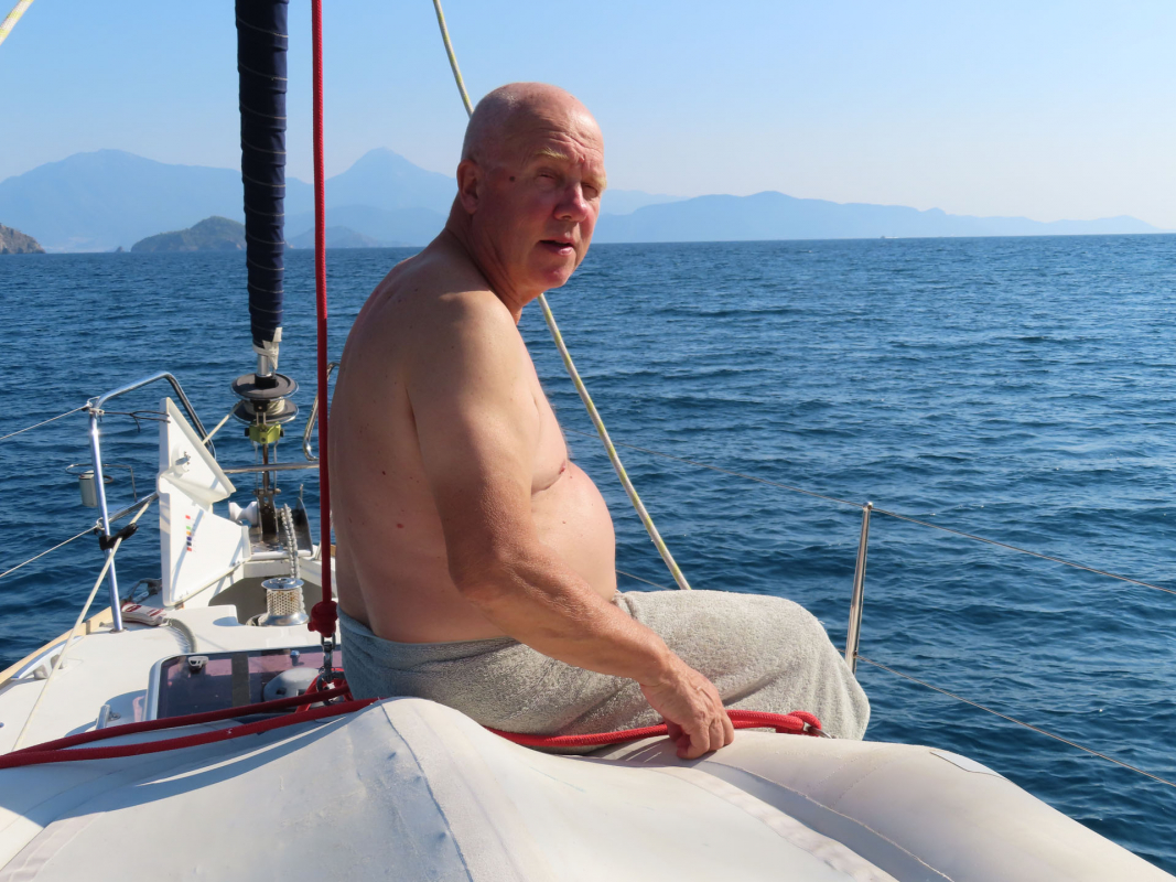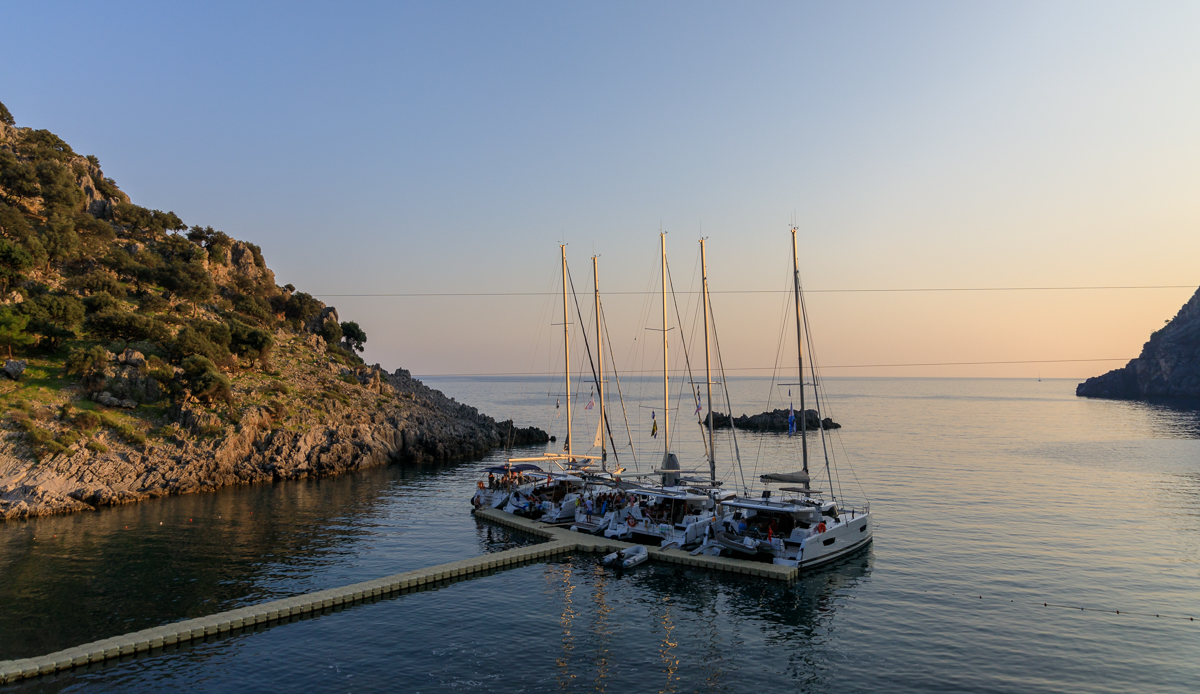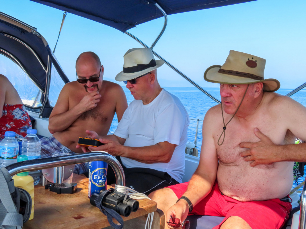 Maanantaina päätettiin tuuliennusteiden perusteella hylätä suunnitelma pitkästä legistä itään Kekovan suuntaan, mikä osoittautui oikeaksi valinnaksi; harsomaisen kevyen tuulen saattelemana matkattiin länteen. Päivittäinen uinti ja lounas nautittiin Baba Adasi -saaren pohjoisrannalla, mistä jatkettiin illaksi Disibilmezin ravintolalaituriin.