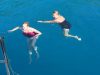 Perjantaina hajaannuttiin taas paluumatkalle lähtösatamiin - ennen sitä tietysti matkan varrelle sopivan poukaman suojaan ankkuriin, uimaan ja lounaalle.