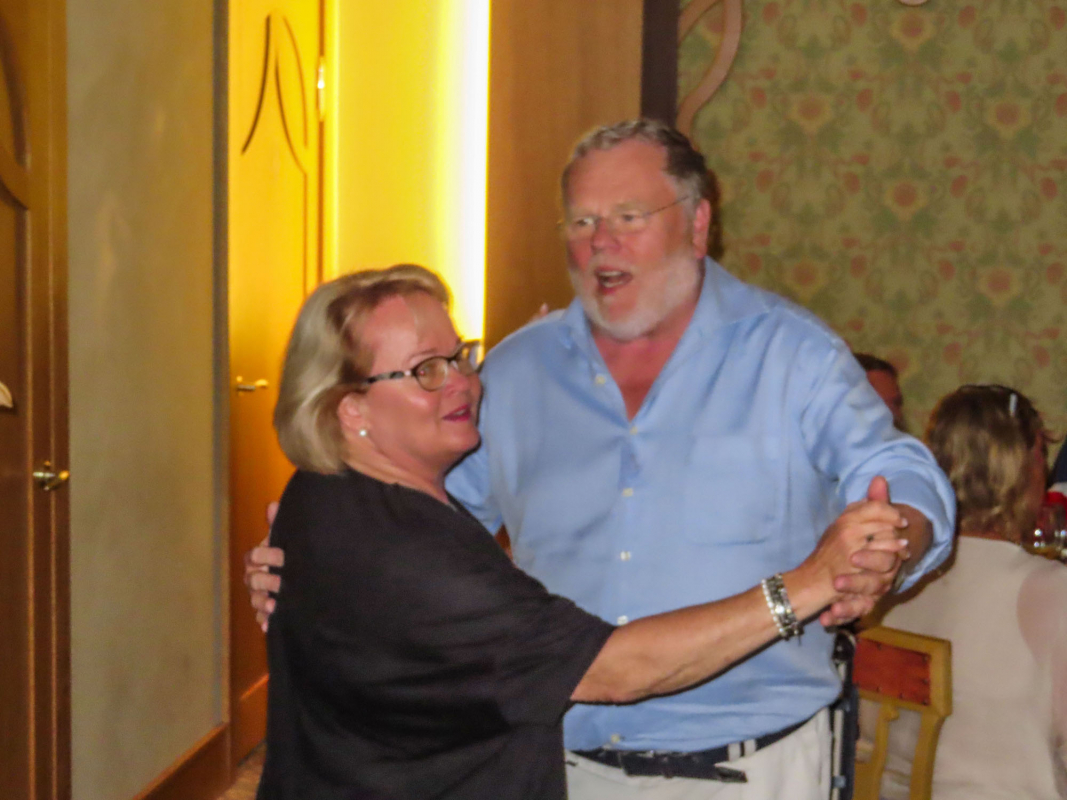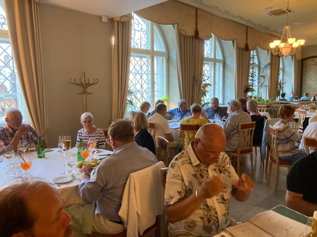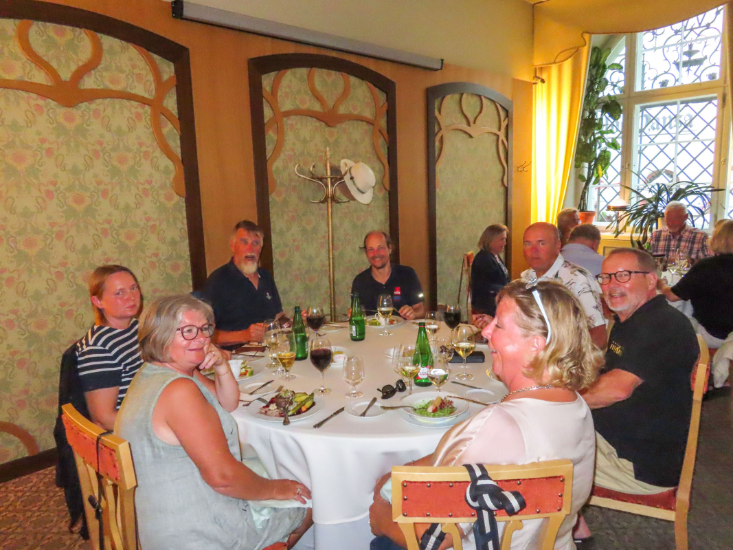 Lauantai oli tällä kertaa täysin vapaa suunnitellusta yhteisestä ohjelmasta eli kukin venekunta sai ottaa omat koronariskinsä kaupungin hulinoissa. Illan suussa kokoonnuttiin koko 27-henkisen osallistujajoukon voimin Scheeli-ravintolaan illalliselle. Kattaus oli ajan hengen mukaan väljä ja yläkerran ravintolasali lähes täysin seurueen käytössä. Elävän kamarimusiikin tahdissa riehaannuttiin jopa tanssimaan salin parketilla.