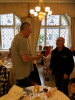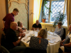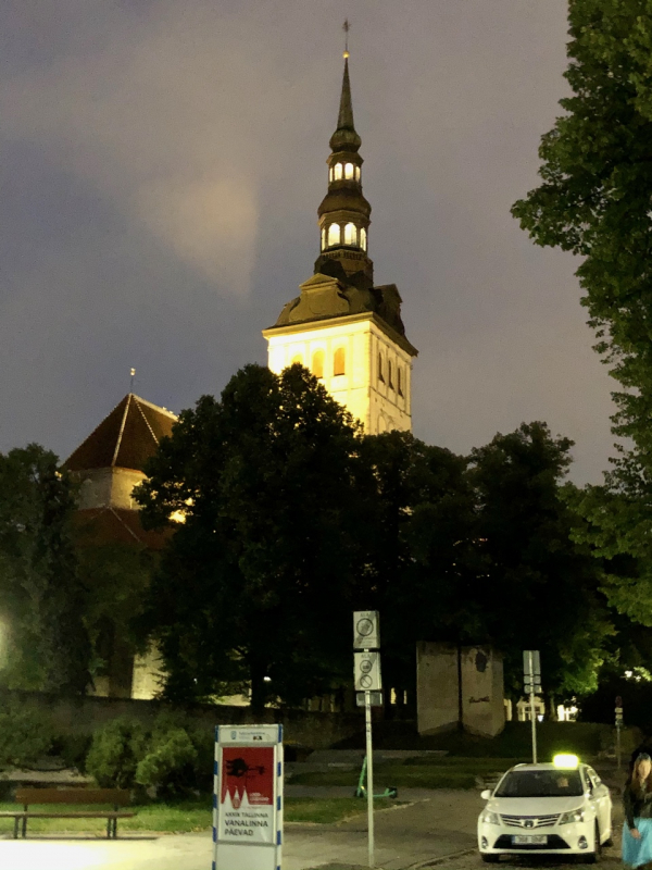 Illalliselle Vanhaankaupunkiin lähdettiin paikallisen bussiyrittäjän Elven ja hänen kaverinsa uudenkarheilla pikkubusseilla. Restoran Scheeli oli varannut 37 hengen seurueellemme pääosan yläkerran salistaan, jossa soi taitavan pianistin ja laulajan esittämä jazzahtava musiikki. Duon jo lopetettua Eevis istahti pianotuolille, puhis Wespa kiipesi baarijakkaran päälle seisomaan, ja meille näytettiin kuolematon ad-hoc -versio Metsämökin tontusta kaiken nähneen henkilökunnan suureksi ällistykseksi.