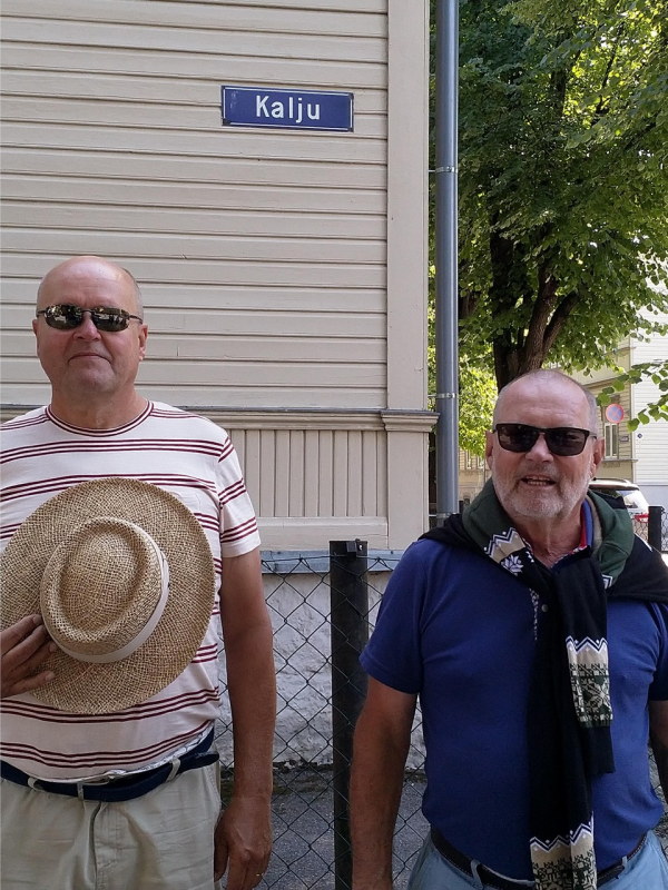 Ruokaakin kehuttiin yleisesti, ja laskujen jälkeen seurue valui poutaantuneeseen, lämpimään iltaan odottamaan bussien tuloa. Paluumatkalla risteillessämme Kalamajan kapeilla kaduilla kysyin Elveltä, miten hän tietää, mistä satamaan tällä kertaa pääsee. Vastaus oli: en tiedäkään, mutta tunnen nämä kadut!