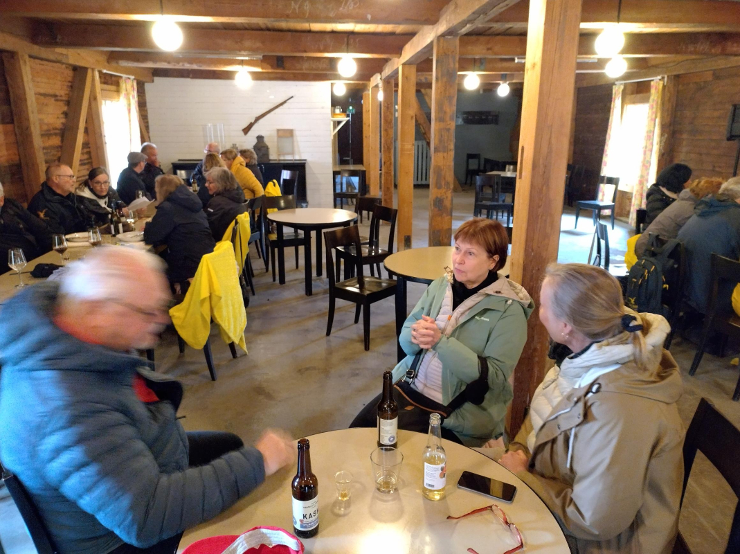 Luonnollisesti terassille kuuluu myös pieni sade, mutta ei hätää, meille oli varattu kokonainen rakennus tämänkaltaisen tilanteen varalta. Siirryimme sisätilaan jatkamaan turisemista, syömistä ja juomien nauttimista. Juki, Wespa ja Teemu kajauttivat pienet laulut ilmoille ukuleleiden säestyksellä.