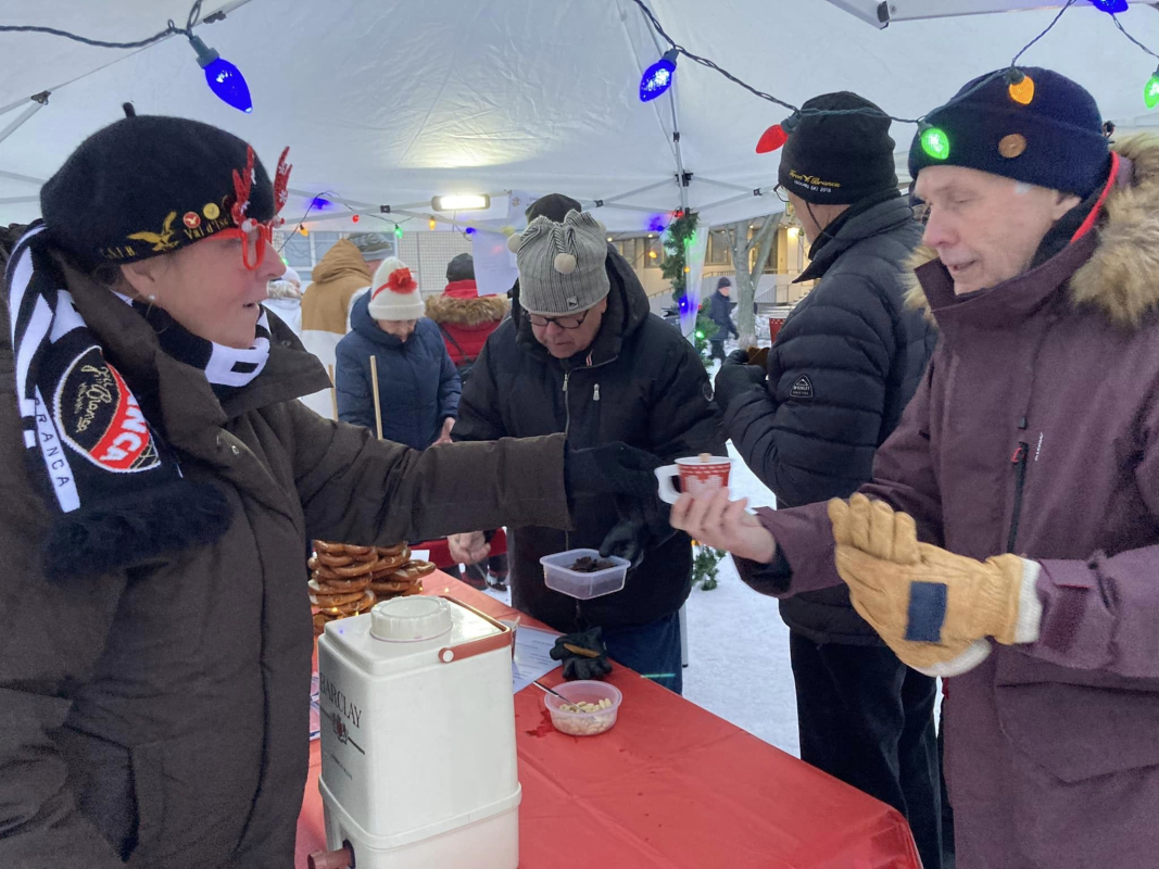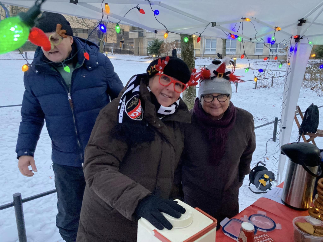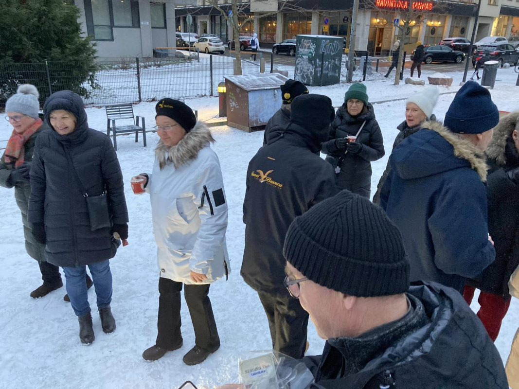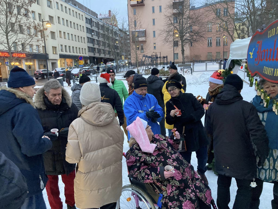Välillä meinasi lämmin glögi loppua, mutta Jami pelasti tilanteen käymällä kotonaan lämmittämässä lisää. Tunnelma oli korkealla ja kauppa kävi, loppuipa mm. suosittu Fernet-sinappi kesken.