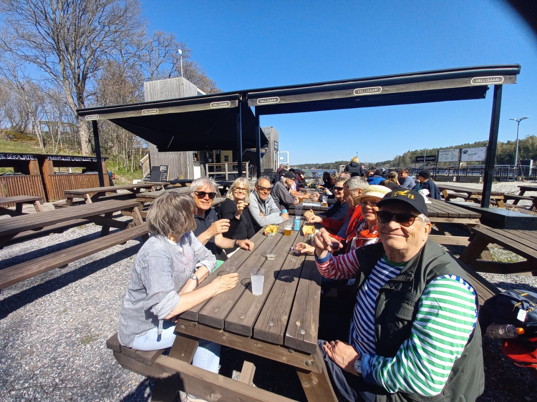 Terassikauden avajaisten keskipisteenä toimi tänä vuonna Vallisaari ja sen rannassa sijaitseva Satamakahvila. Vallisaareen saapui väkeä niin omilla veneillä, kuin yhteysaluksellakin. Veneitä oli kahdeksan ja avajaisia viettämässä kaiken kaikkiaan 21 jäsentä sekä muutamia vierailijoita.
