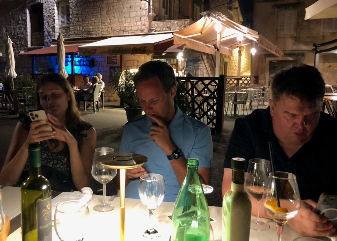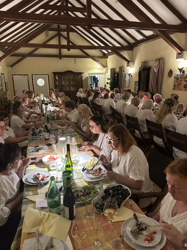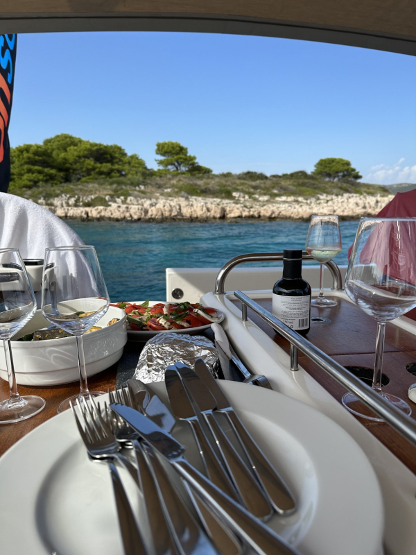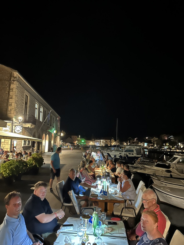 Veneiden vastaanotto jakautui peräti kolmeen satamaan Splitissä ja sen ympäristössä, joten ensimmäinen yhteinen illanvietto oli sunnuntaina ensimmäisen noin 25 mailin purjehduksen jälkeen Hvarin Stari Gradissa. Sieltä matka jatkui Visin kautta St. Klementin saaren Palmižanaan, josta siirryttiin taksiveneillä tutustumaan illalliselle Hvarin kaupunkiin, "Kroatian Capriin". Seuraavana päivänä purjehdittiin Hvar-saaren pohjoispuolen Vrboskaan, jossa maisteltiin paikallisia viinejä ja vähän grappaakin, minkä jälkeen huomattavan iloinen seurue kokoontui illastamaan ranta-ravintolan pitkään pöytään aivan satamalahden rantaviivalla. Torstain purjehdukselta päädyttiin Milnan Marina Vlaškaan, jossa After Sail -drinkkien jälkeen pukeuduttiin valkoisiin, otettiin ryhmäkuvat ja vietettiin regatan ohjelmallinen päätösillallinen aivan laiturin tuntumassa sijaitsevassa ravintolassa. Ohjelmassa oli päätösseremonioiden lisäksi paikallista elävää musiikkia sekä eskaaderin mukana purjehtineen Jp Pirisen taikashow.
