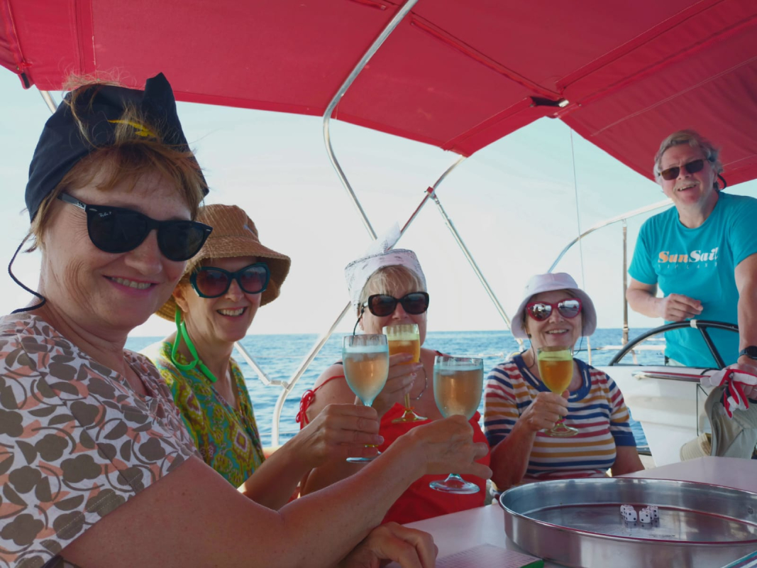 Viimeiseksi illaksi hajaannuttiin taas lähtösatamiin. Purjehdus sujui vauhdikkaasti reippaassa avotuulessa. Tankattaessa ja rantauduttaessa vuokraamojen laitureihin päästiin harjoittelemaan peruuttamista ja kiinnittymistä ahtaanpuoleisissa laituriväleissä vähintään kohtalaisissa tuulenpuuskissa.