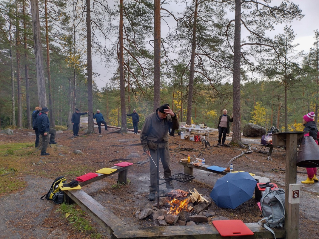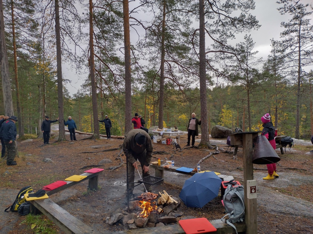 Klubin ulkoilupäivää vietettiin lauantaina 12.10. Nuuksion metsissä, Kolmoislammilla. Tapahtuma aloitettiin n. 7 km:n lenkillä kauniissa erämaa- ja järvimaisemissa. Sadettakin ripsotteli mutta sehän ei reippaita klubilaisia lannistanut pätkääkä 8;n. Klubilaisia oli paikalla 14, yhteensä 16 henkeä.