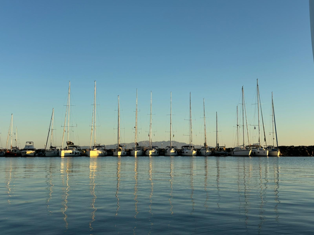 Purjehdusmatka Rodoksen pohjoispuolen saaristoon alkoi lauantaina iltalennolla. Veneet odottivat tulijoita ovet auki Rodoksen uudemmassa marinassa jo toiselle viikolle lähtevän ryhmän viettäessä viikonloppua muualla. Sataman ravintoloista valittu kohde osoittautui asialliseksi; koko viikon kestänyt hyvin syöminen alkoi jo ensimmäisenä iltana.