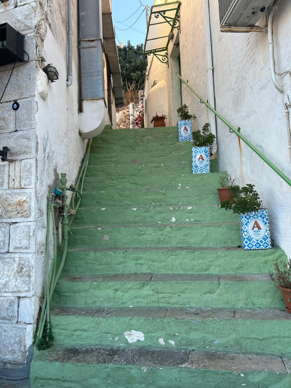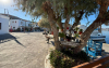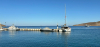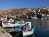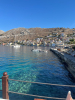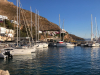 Keskiviikkona oli tarkoitus purjehtia etelään aina Chalkin saarelle asti, mutta kevyt myötäinen tuuli ja seuraavan päivän tuuliennuste lyhensivät aiottua matkaa, ja niinhän päädyimme uudelleen Tiloksen Livádia-satamaan. Tällä kertaa ehdittiin pysähtyä ennen satamaa pieneen poukamaan ankkuriin uimaan ja lounastamaan. Perillä oltiin puoli kahden aikaan, jolloin satama oli jo täynnä ja katamaraanille tarjolla enää viimeinen kylkipaikka poikittain aallonmurtajan päässä. Jo tutuksi tullut satamamauno todisti taas taitonsa kolmen knaapin nopean, hämähäkkimäisen köysivirityksen kutojana ja peri vähin elein 35 euron satamamaksun käteisenä. Paikka osoittautui rauhalliseksi, sinne oli vedetty roikalla sähköt, ja veneen kiitettävän pitkä vesiletkukin yletti hanaan kiinni. Illalla ajauduttiin yksimielisesti uudelleen Gorgona-ravintolan parvekkeelle, eikä petytty nytkään. Yö oli tyyni ja kirkas, mutta komeetan pyrstöä ei yrityksistä huolimatta saatu näkyviin.