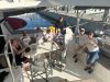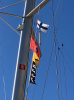 Tiloksella meidät ohjattiin ahtaaseen taskuparkkiin kylki laituriin päin; satama tuli niin täyteen, että kaikki mahdolliset toisen kerroksen rinnakkaispaikatkin olivat käytössä. Kylkeemme tuli latvialaisvene, joka häädettiin yhteysalusten ja merivartioston käytössä olleesta aallonmurtajasta pois. Heidän piti lähteä illallisen jälkeen vielä merelle, mutta eihän tuuli ennusteista huolimatta laantunut vaan puhalsi navakasti aamuun asti.