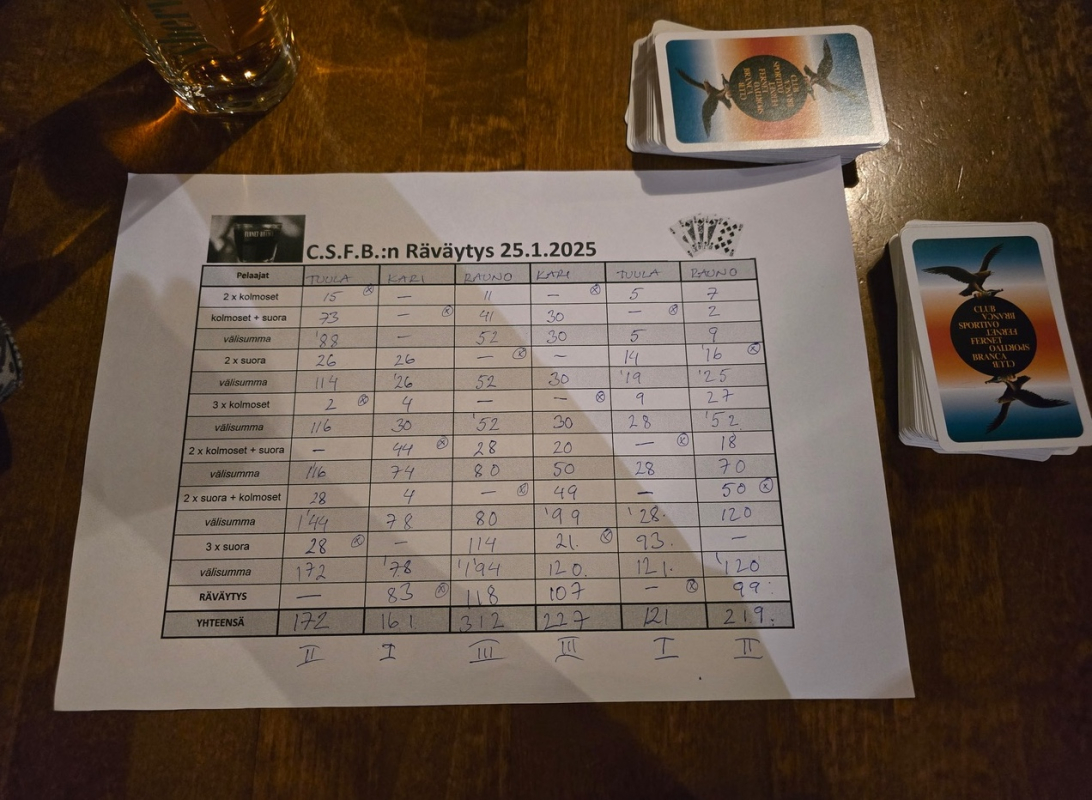 Räväytyskorttipelit pelattiin 25.1.2025 Paikalla oli kolme fernettiläistä. Kari Lappalainen, Tuula Moliis ja Rauno Moliis