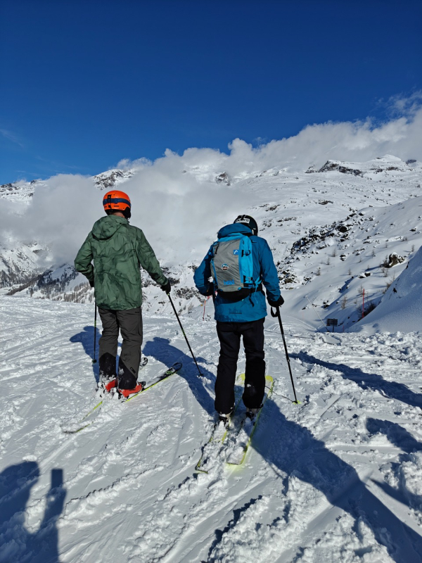 Lumisateisissa, pilven sisälllä lasketuissa raskaissa laskuissa oli oma tunnelmansa, ja yllättävää kyllä: melko korkeista lämpötiloista huolimatta rinne pysyi hyvin laskettavassa kunnossa kylään asti - näkyvyys vain jätti toivomisen varaa. Näissä olosuhteissa asiansa osaavan oppaan palvelut olivat arvossaan, kiitokset YouTravelin Petrille.